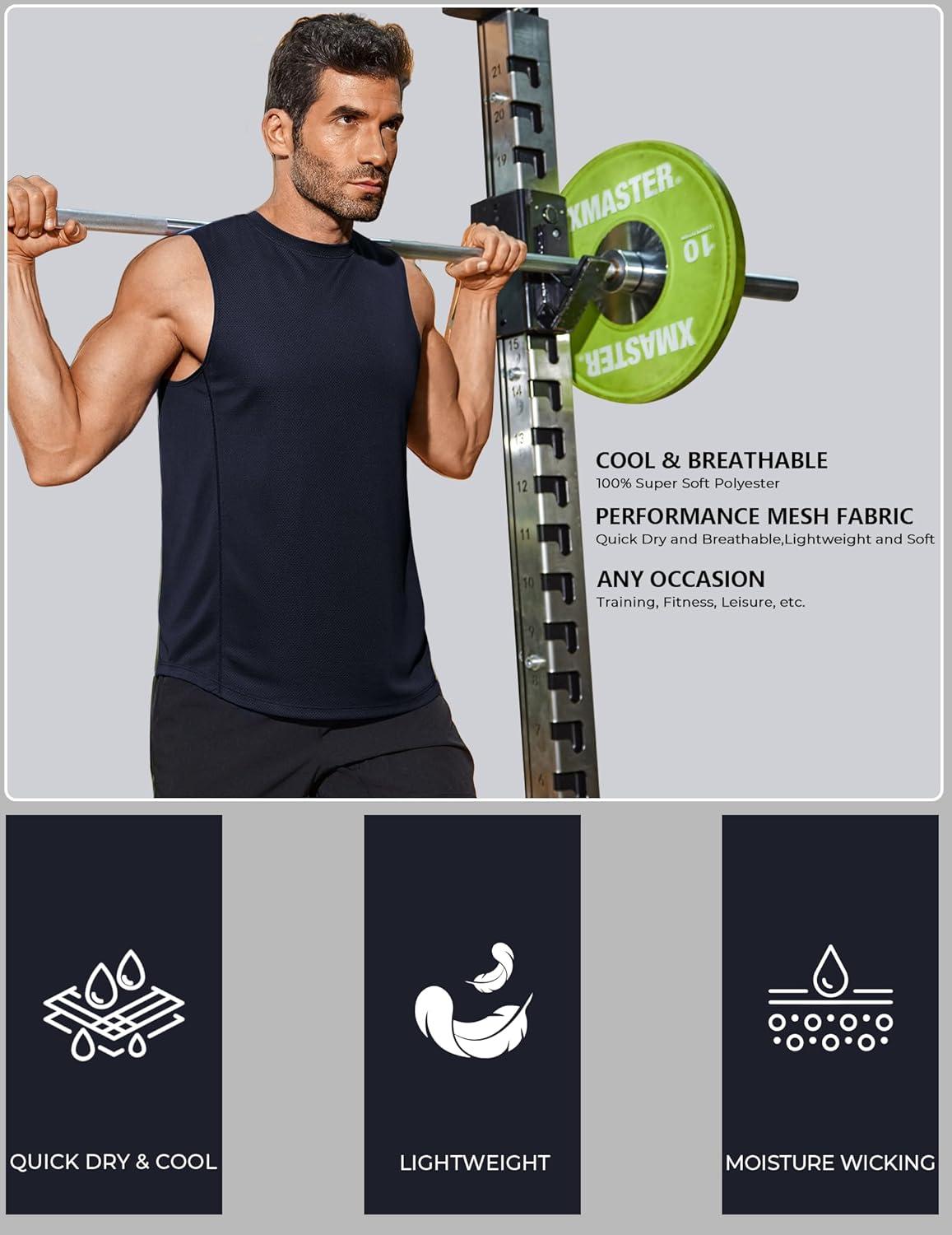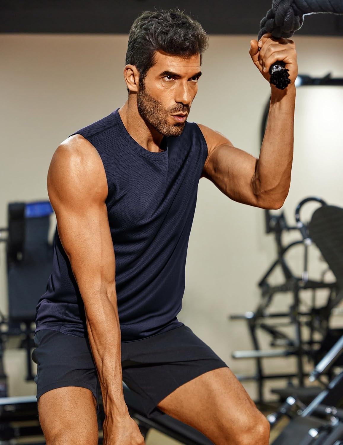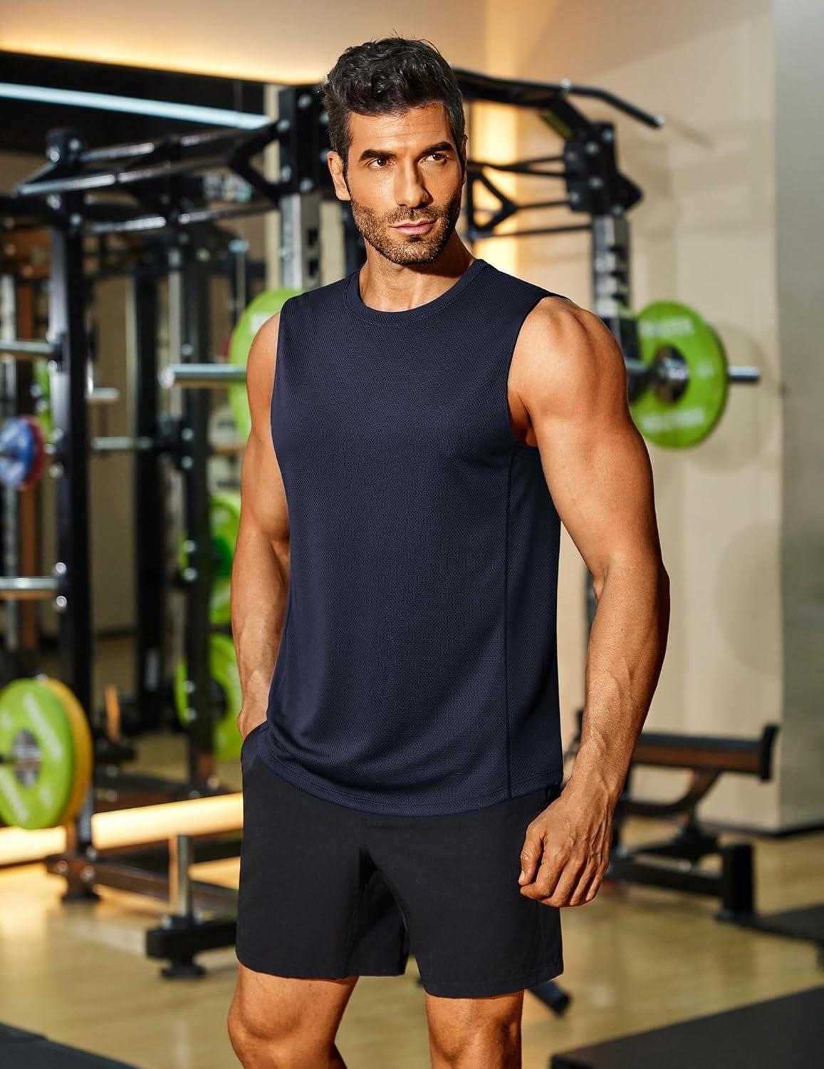 COOFANDY Sleeveless Muscle Shirts for Men Dry Fit Workout Gym Tank Tops Summer Swim Beach Shirt(Navy Blue/Blue)