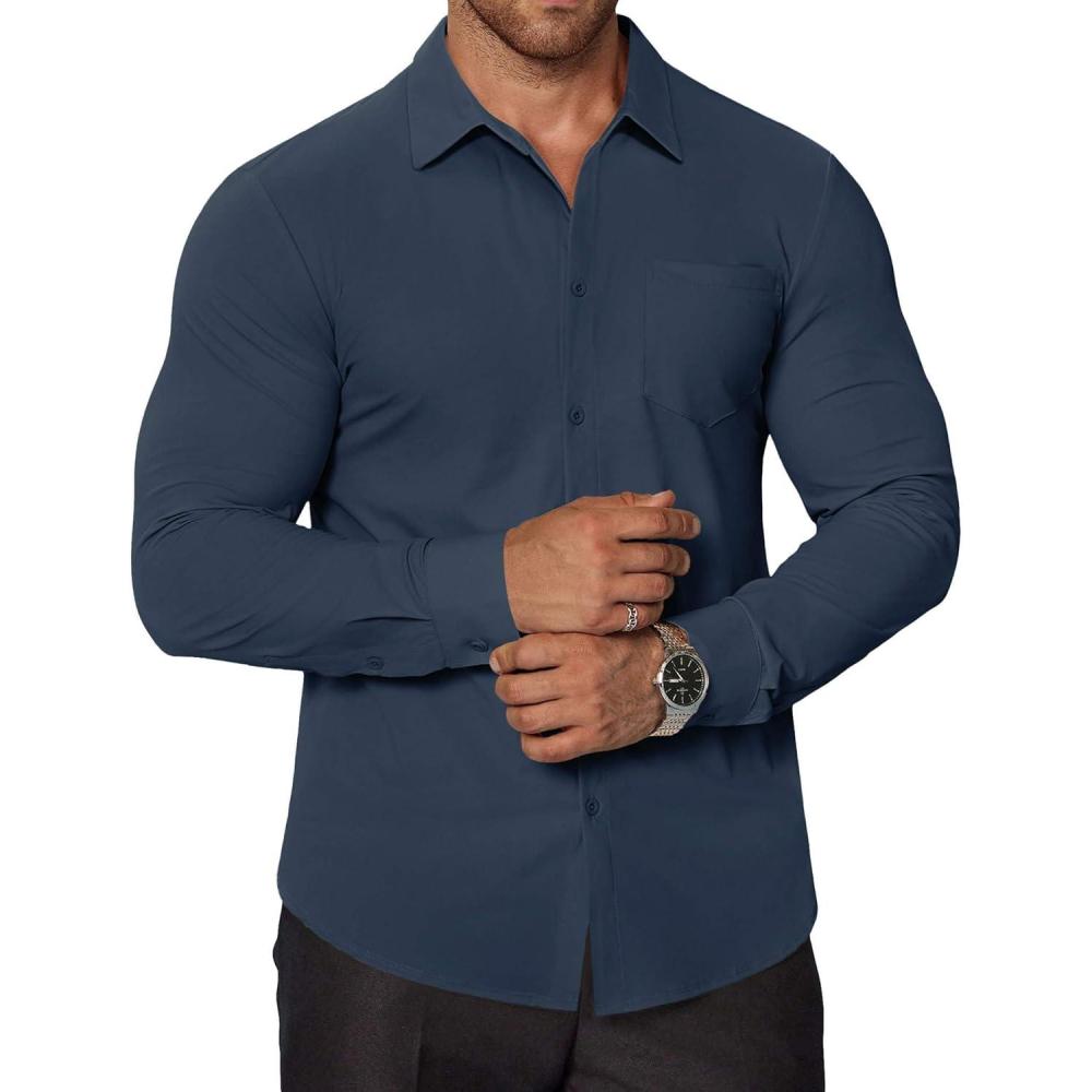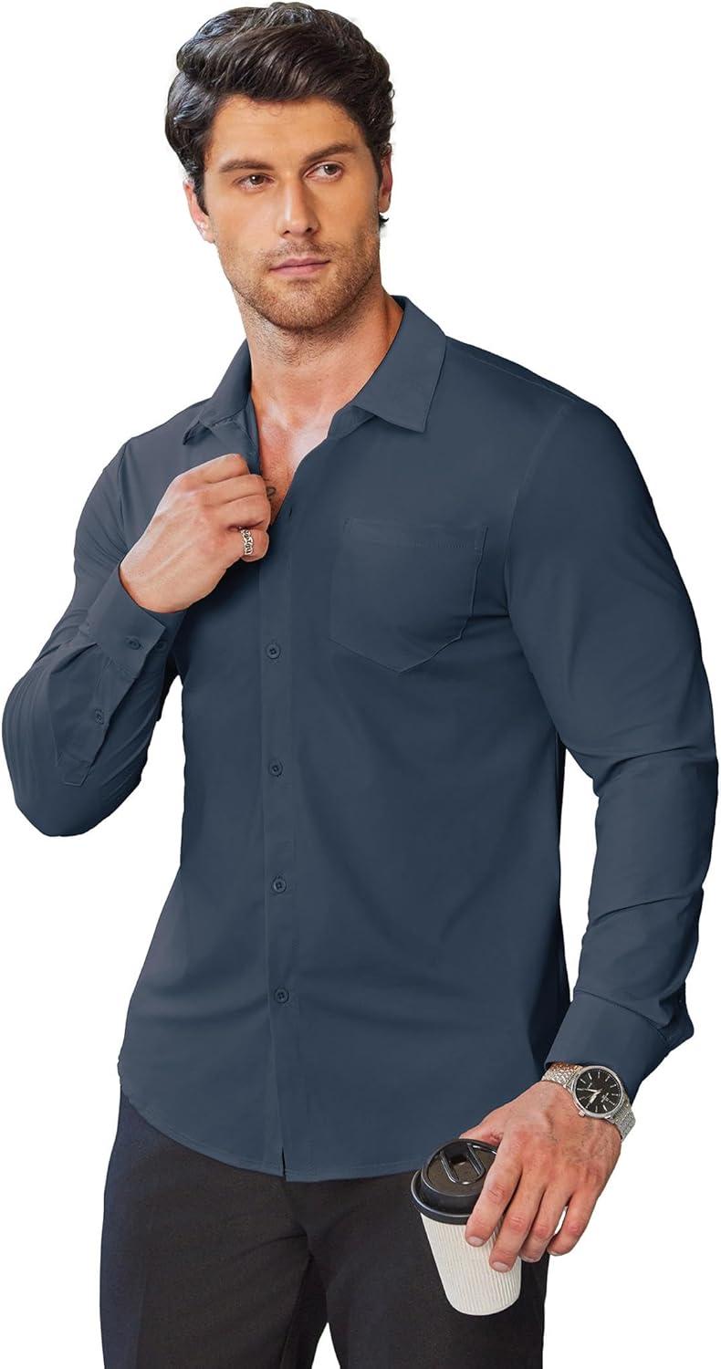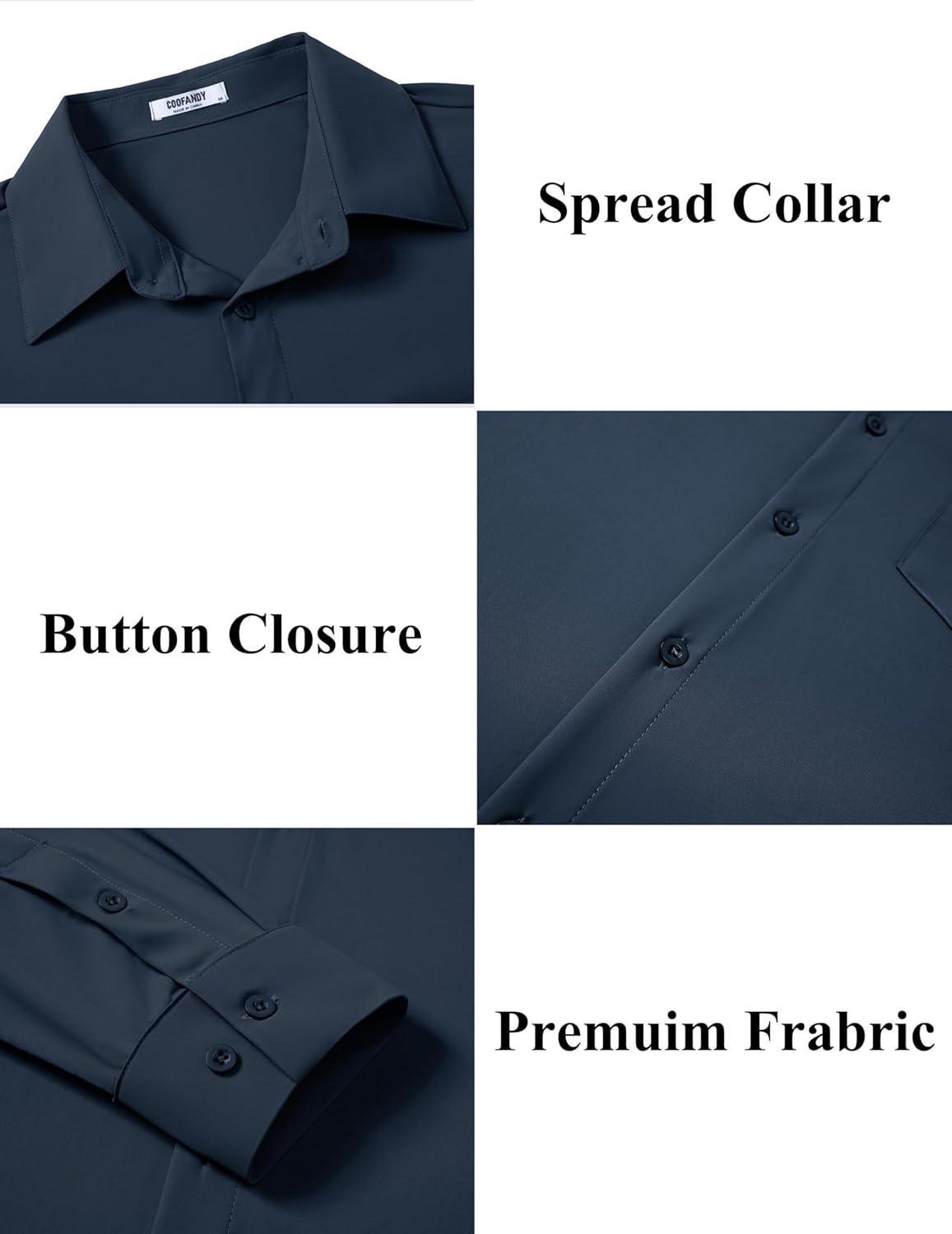 COOFANDY Stretch Mens Dress Shirts Wrinkle Free Long Sleeve Dress Shirt Muscle Fit Button Down Shirt(Deep Blue)