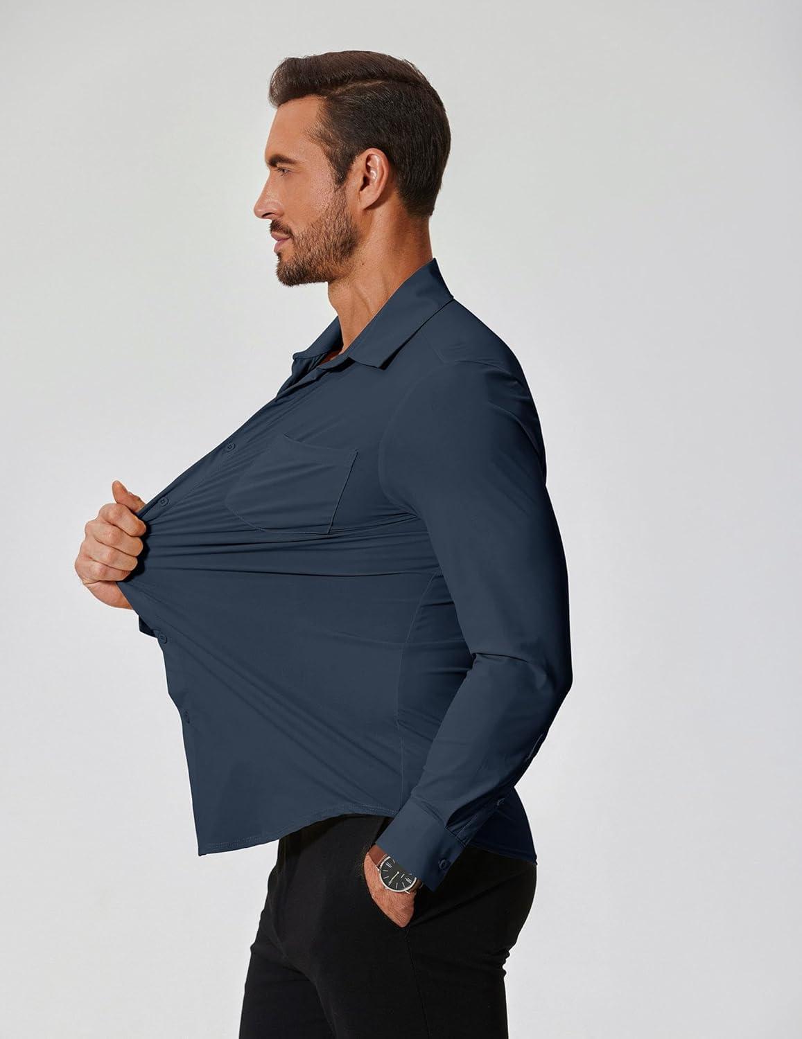 COOFANDY Stretch Mens Dress Shirts Wrinkle Free Long Sleeve Dress Shirt Muscle Fit Button Down Shirt(Dark Blue)