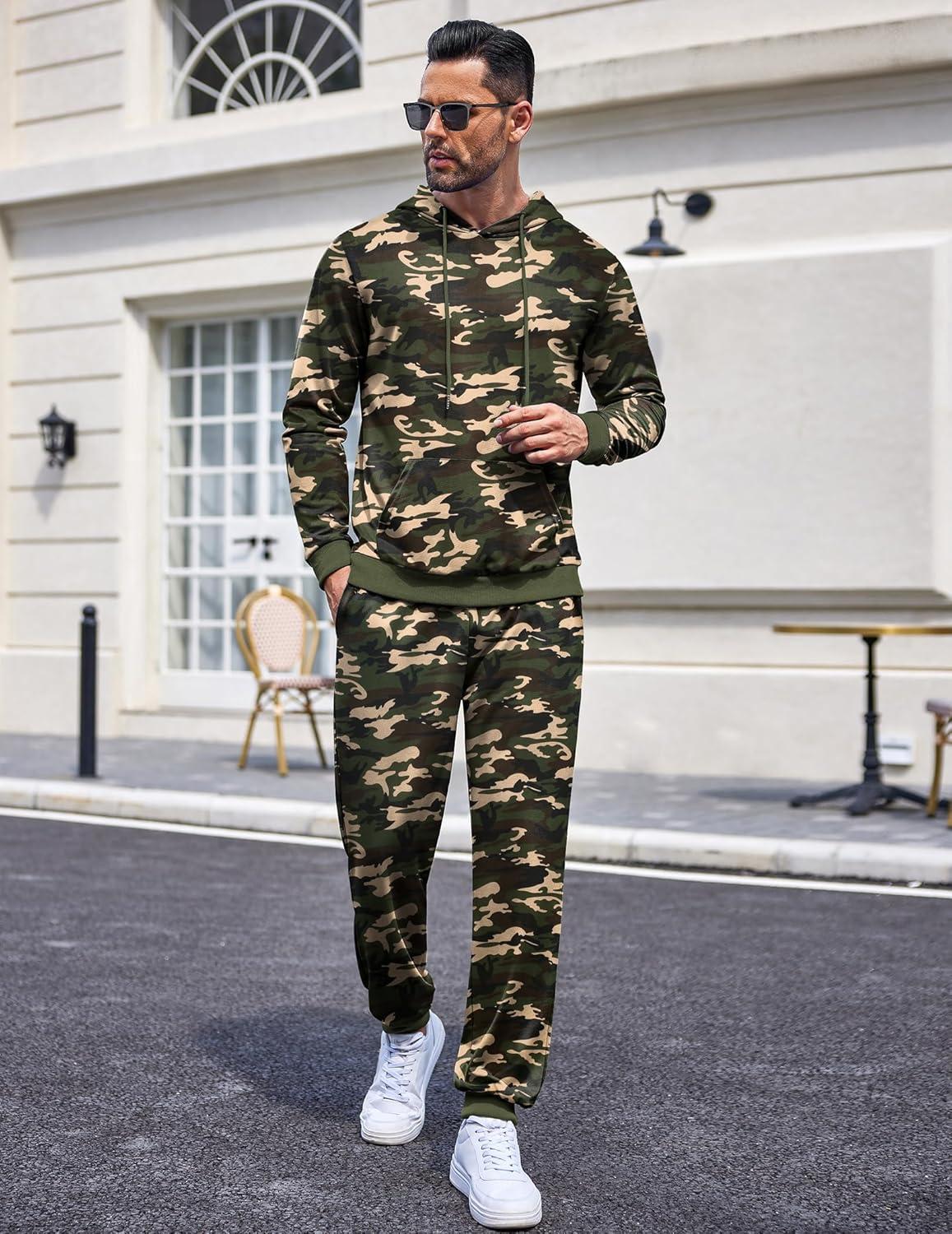 COOFANDY Sweatsuits for Men 2 Piece Tracksuit Casual Athletic Jogging Suit Hooded Set(Camo)