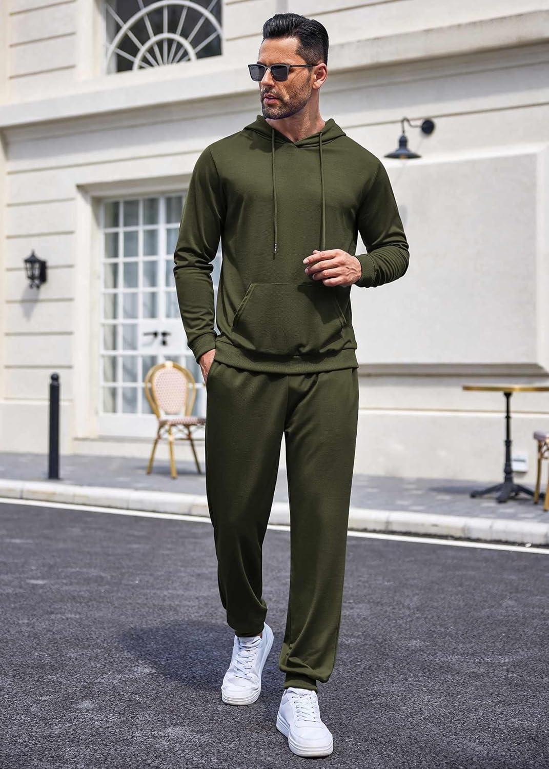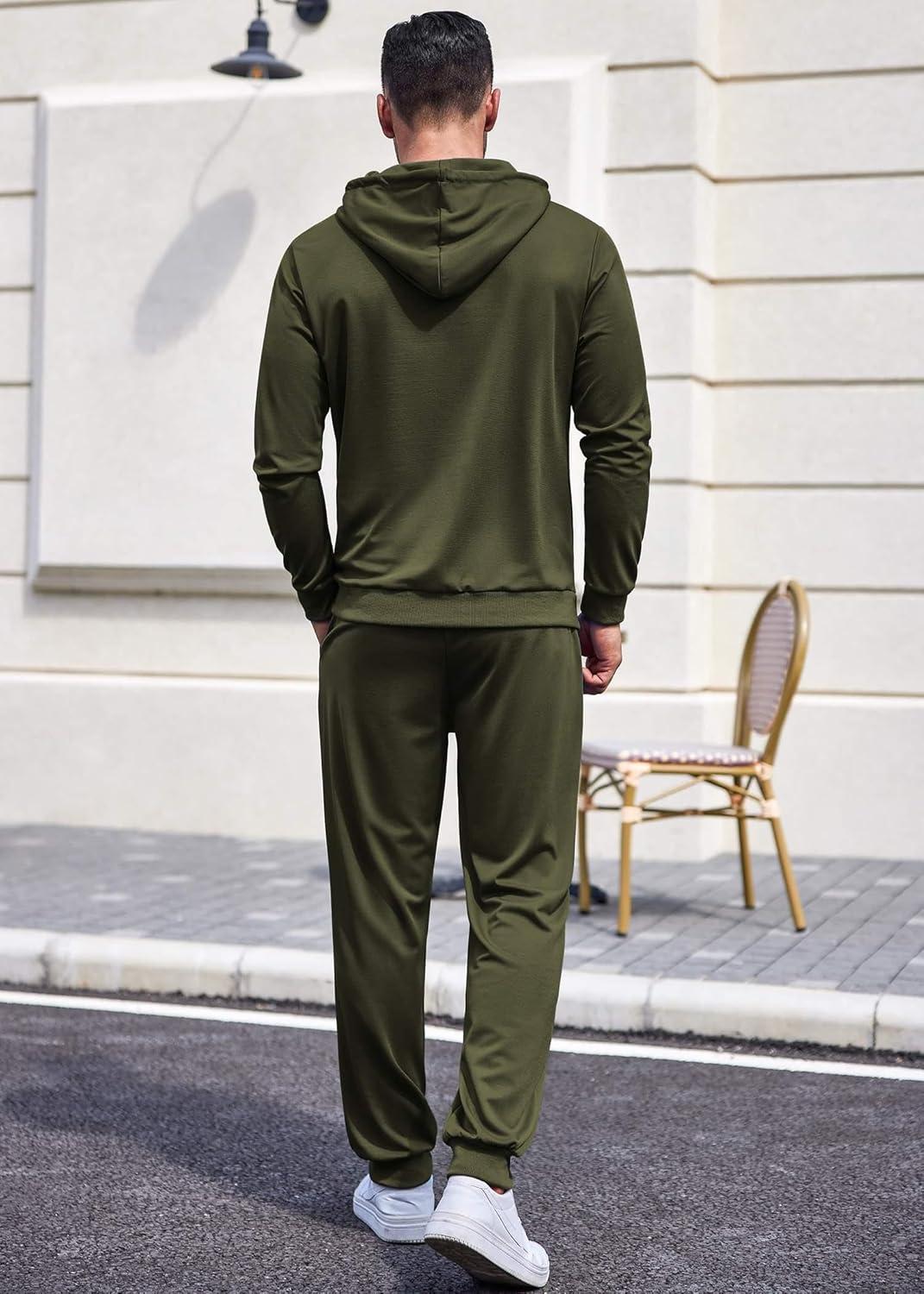 COOFANDY Sweatsuits for Men 2 Piece Tracksuit Casual Athletic Jogging Suit Hooded Set(Olive Green)