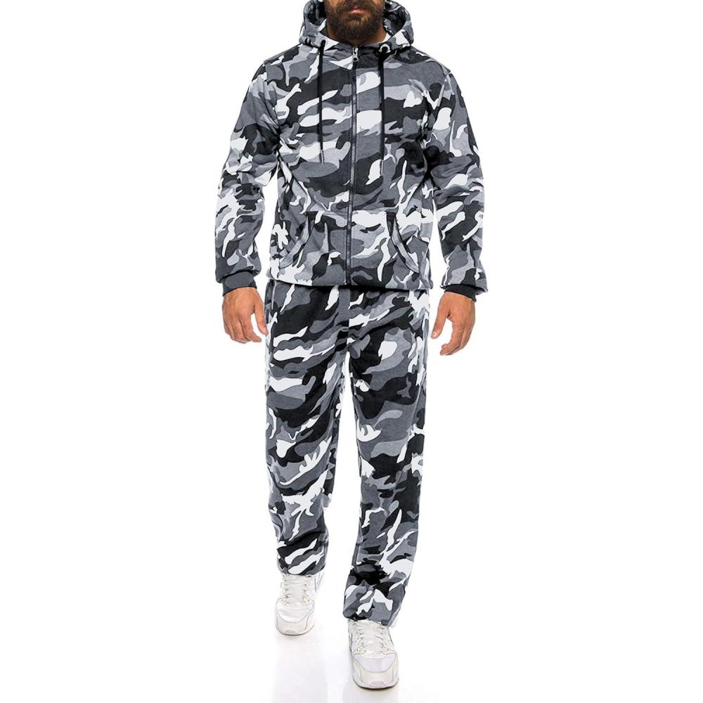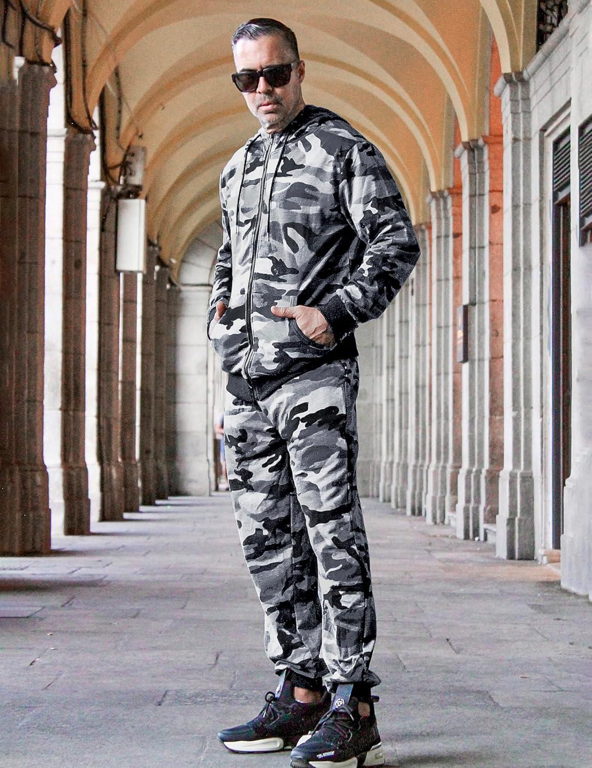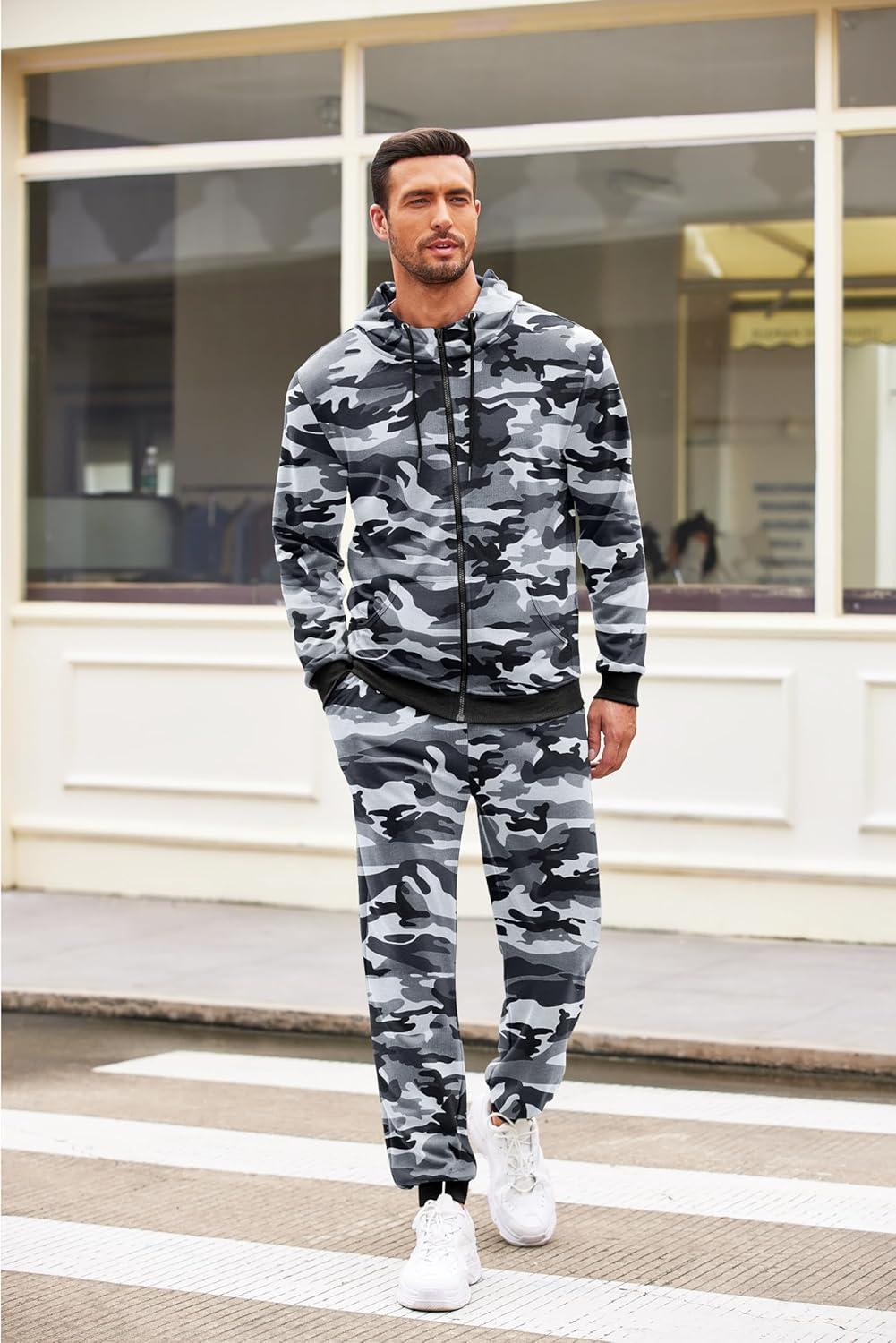 COOFANDY Sweatsuits for Men 2 Piece tracksuit Sets Full Zip Hoodie Sweatpants for Men Casual Sports Jogging Suits S-4XL(Grey Camo)