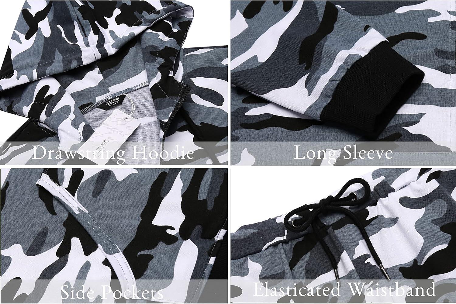 imageCOOFANDY Sweatsuits for Men 2 Piece tracksuit Sets Full Zip Hoodie Sweatpants for Men Casual Sports Jogging Suits S4XLGrey Camo