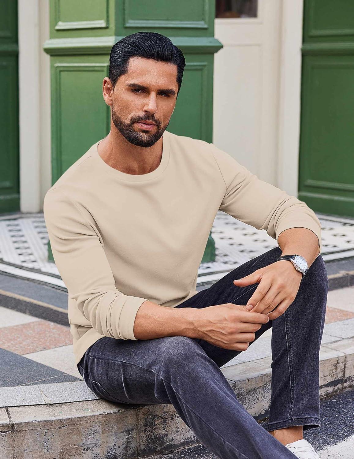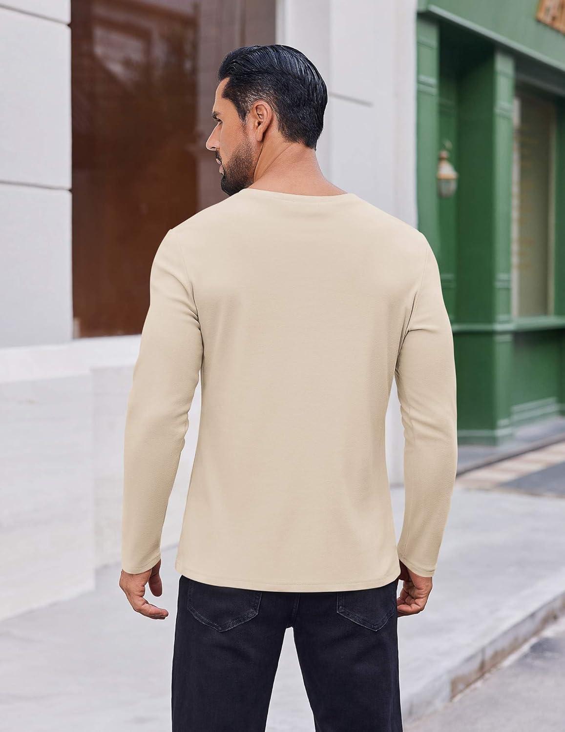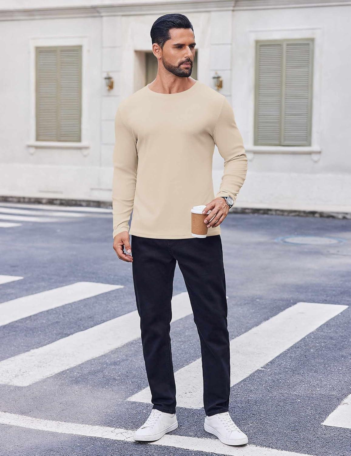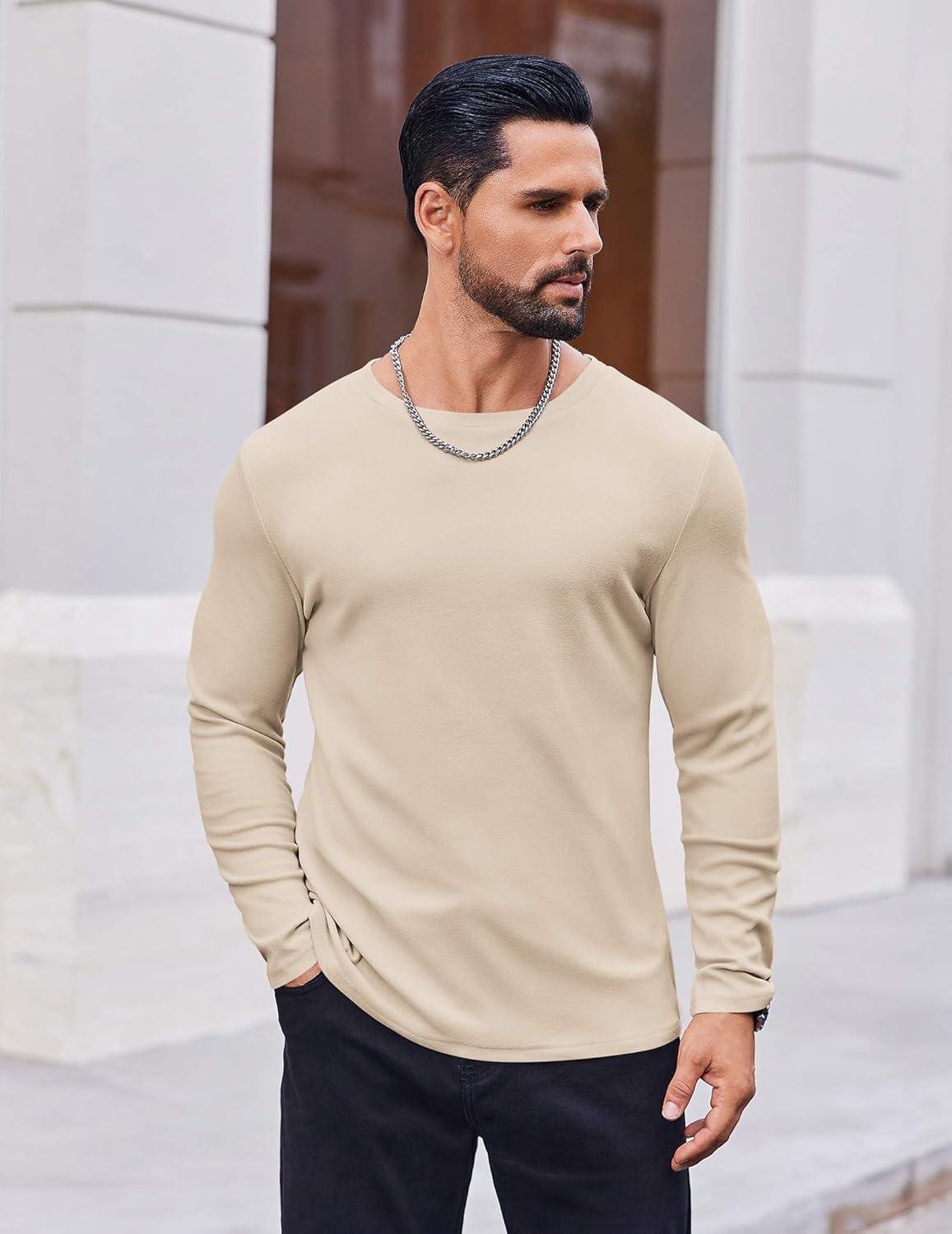 COOFANDY Thermal Shirts for Men Heavyweight Long Sleeve T Shirt Casual Basic Shirts Stretch Crew Neck Undershirts(Khaki)