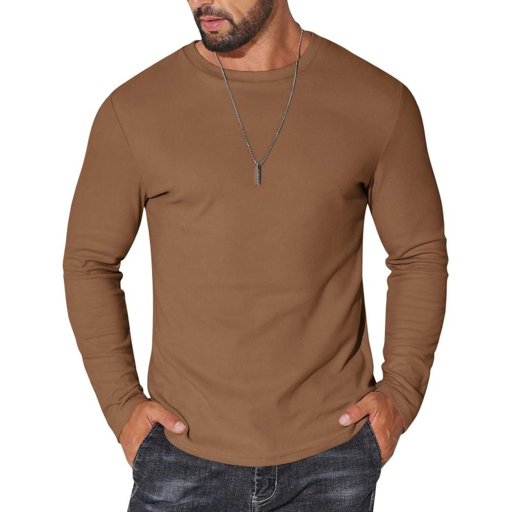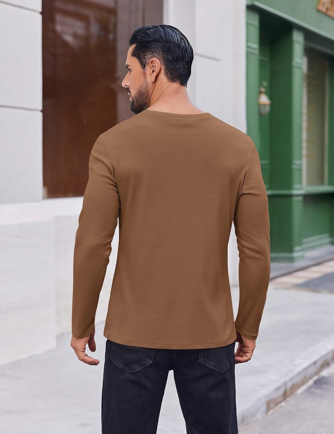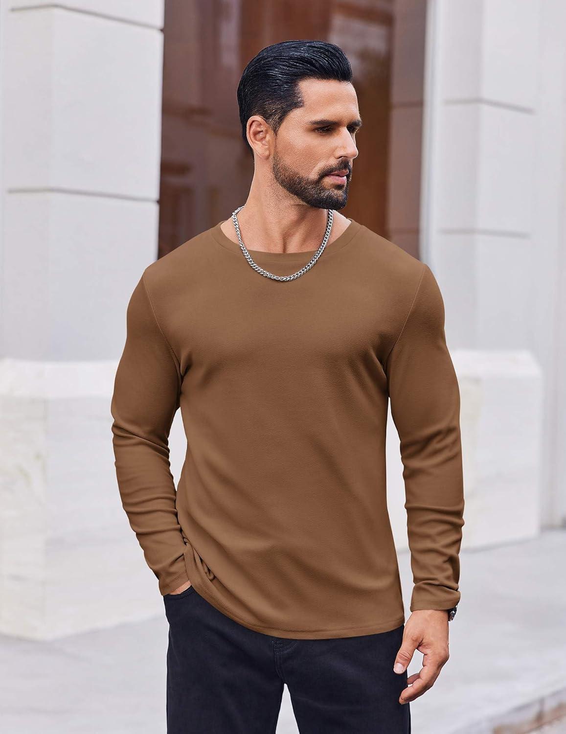 COOFANDY Thermal Shirts for Men Long Sleeve T Shirt Casual Basic Shirts Stretch Crew Neck Undershirts(Brown)