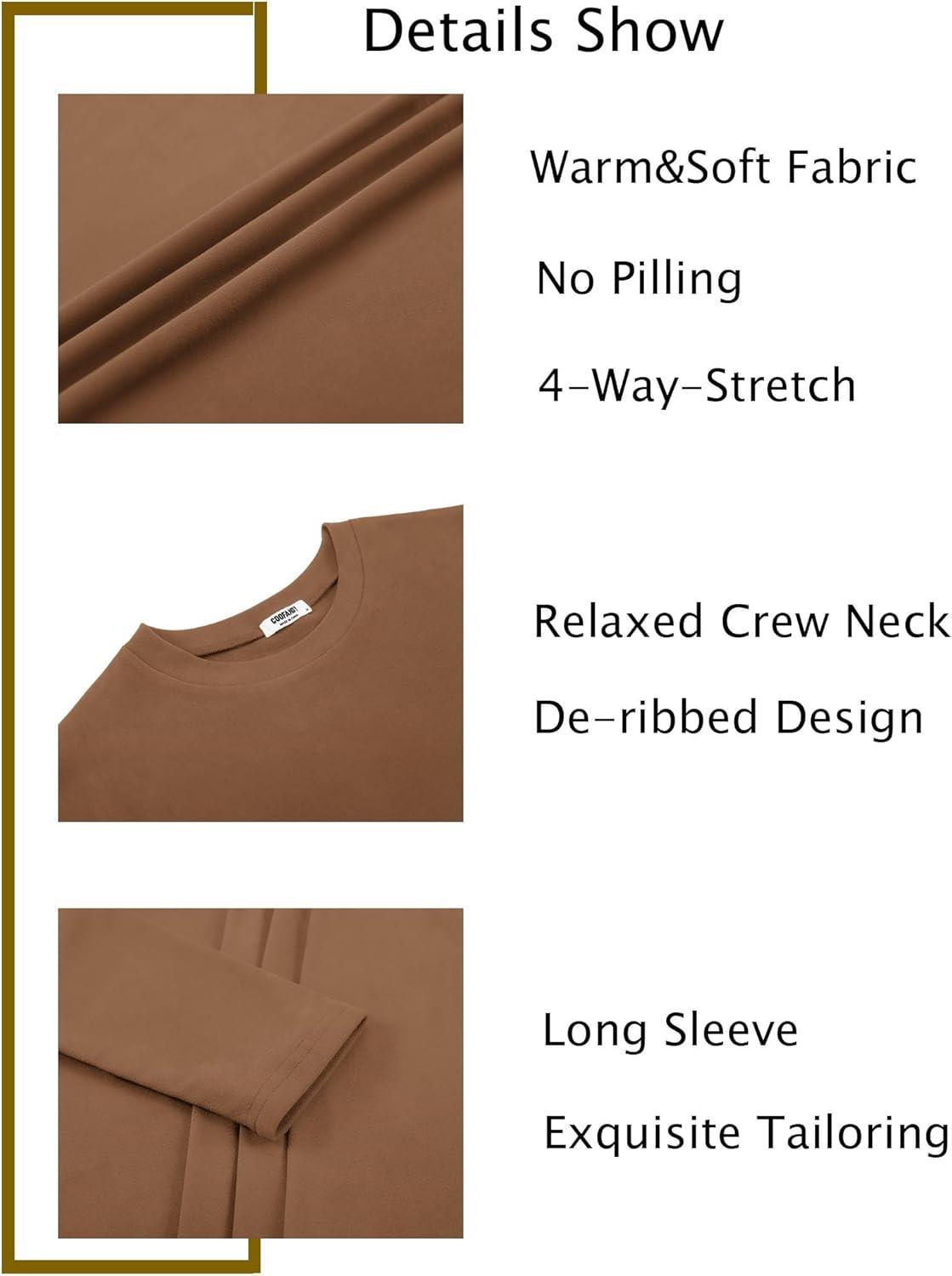 imageCOOFANDY Thermal Shirts for Men Long Sleeve T Shirt Casual Basic Shirts Stretch Crew Neck UndershirtsBrown