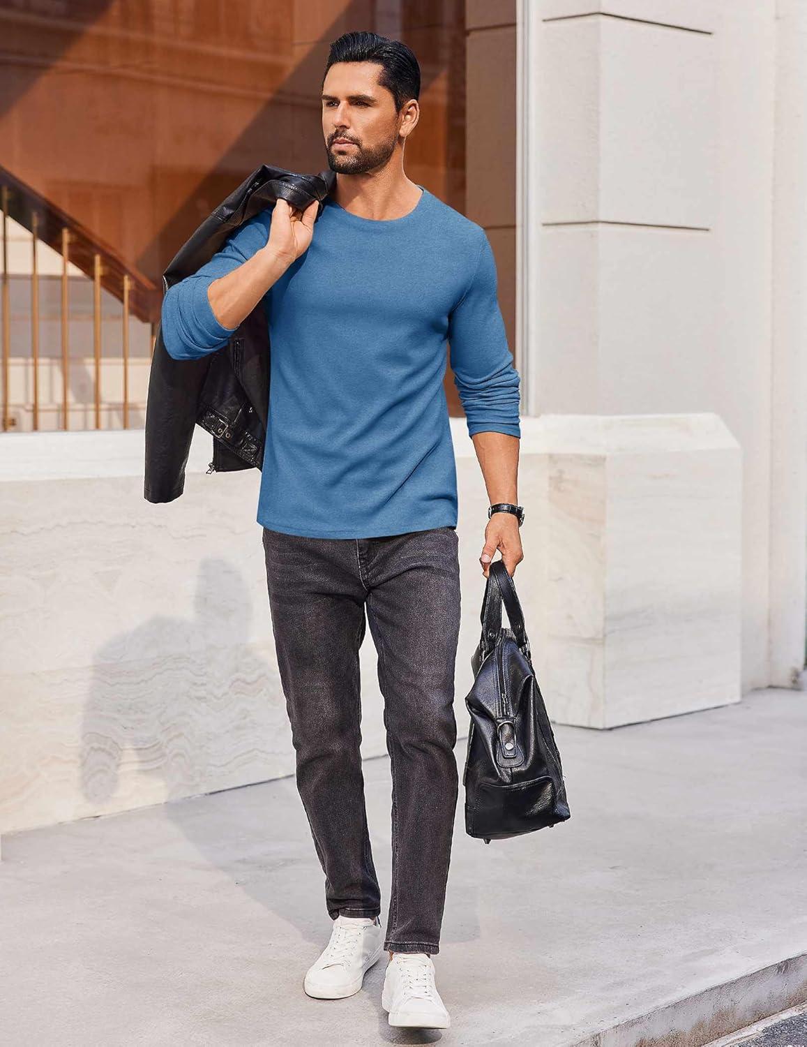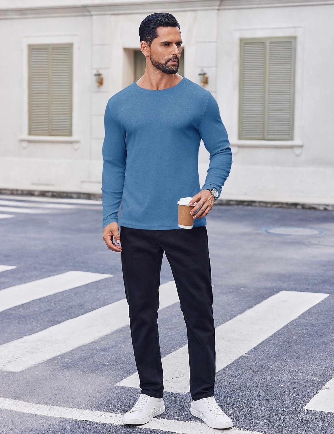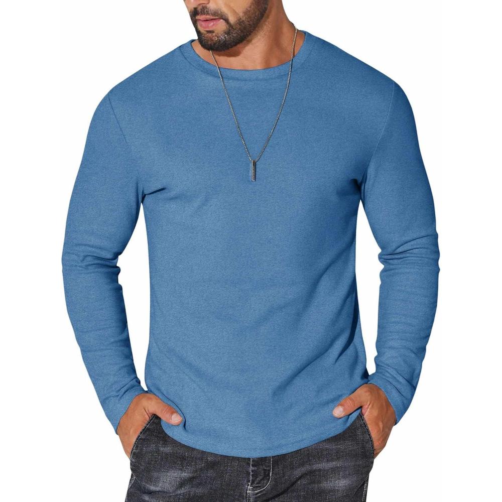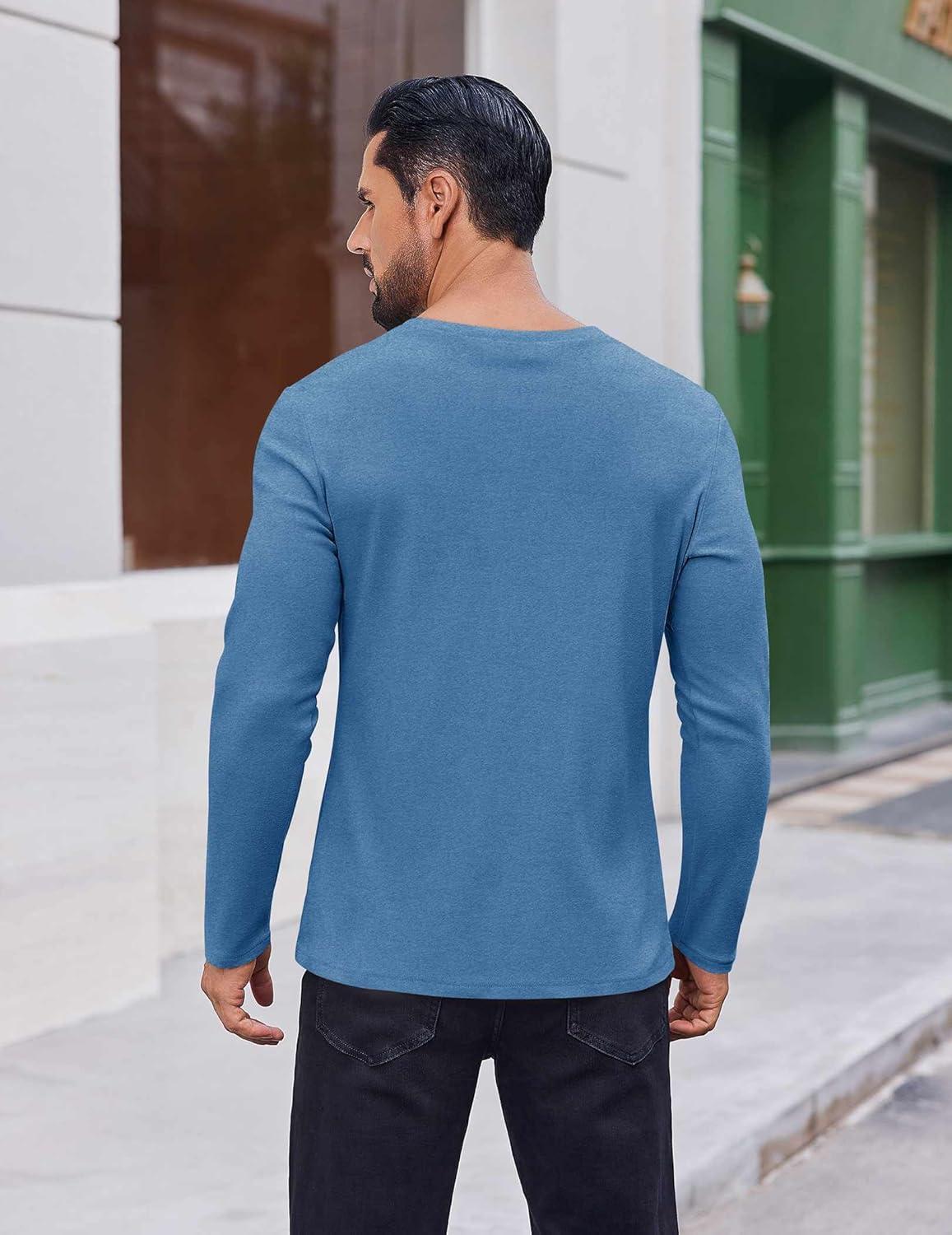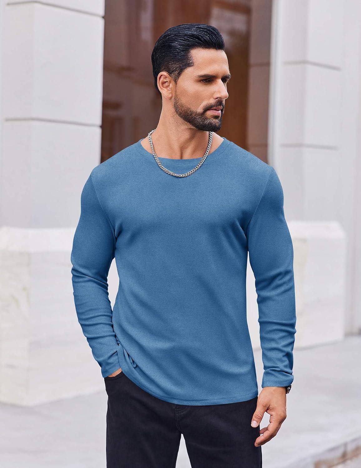 COOFANDY Thermal Shirts for Men Long Sleeve T Shirt Casual Basic Shirts Stretch Crew Neck Undershirts(Deep Blue)
