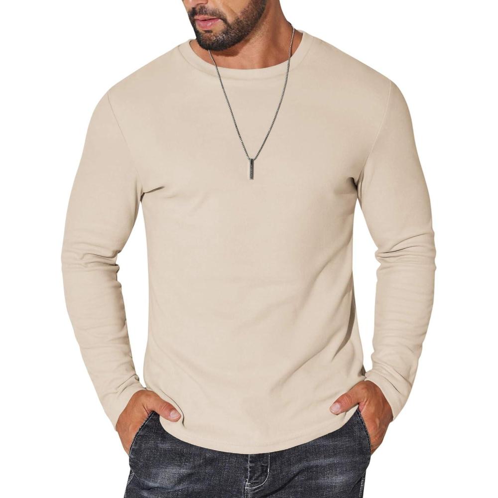 COOFANDY Thermal Shirts for Men Long Sleeve T Shirt Casual Basic Shirts Stretch Crew Neck Undershirts(Khaki)