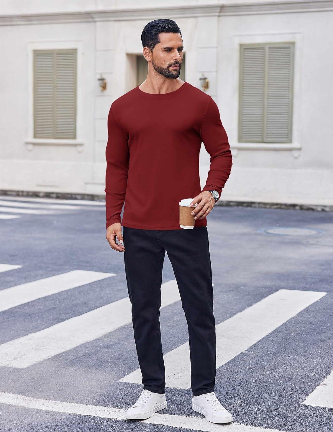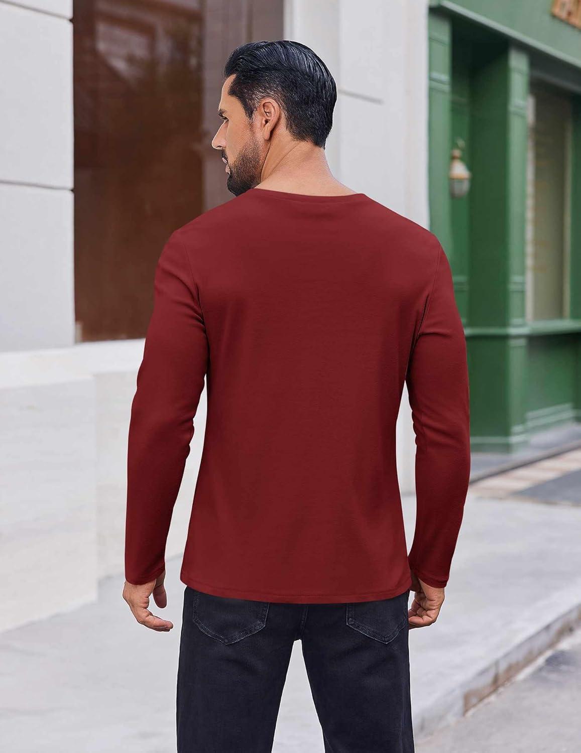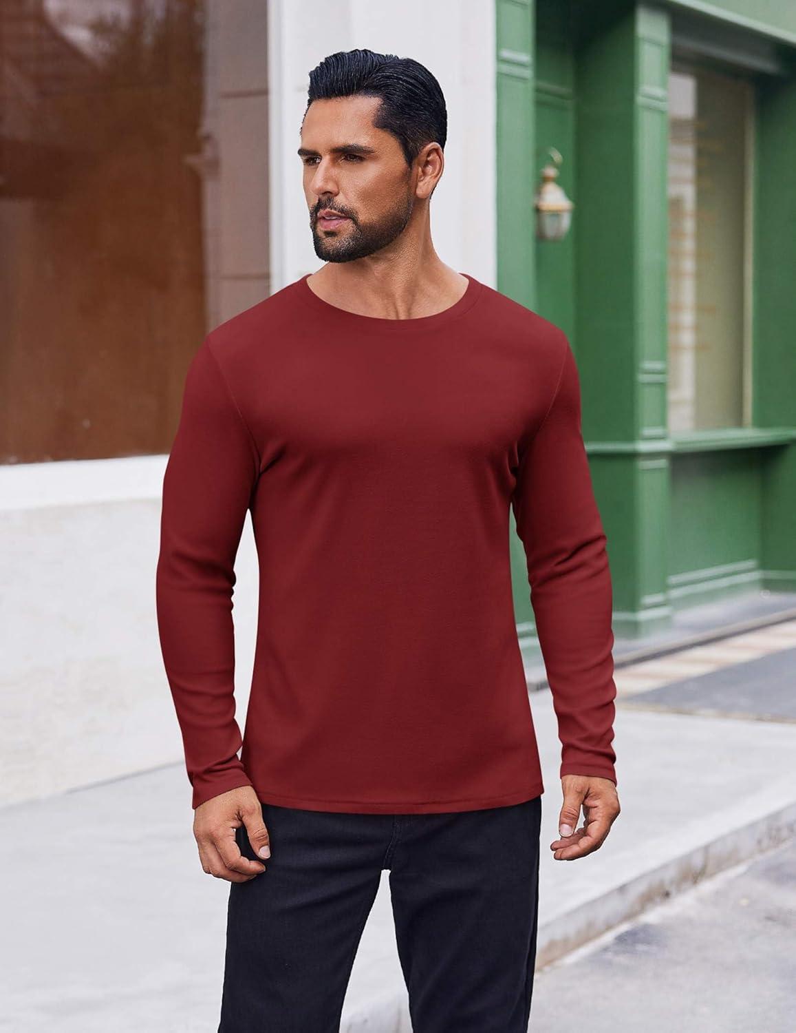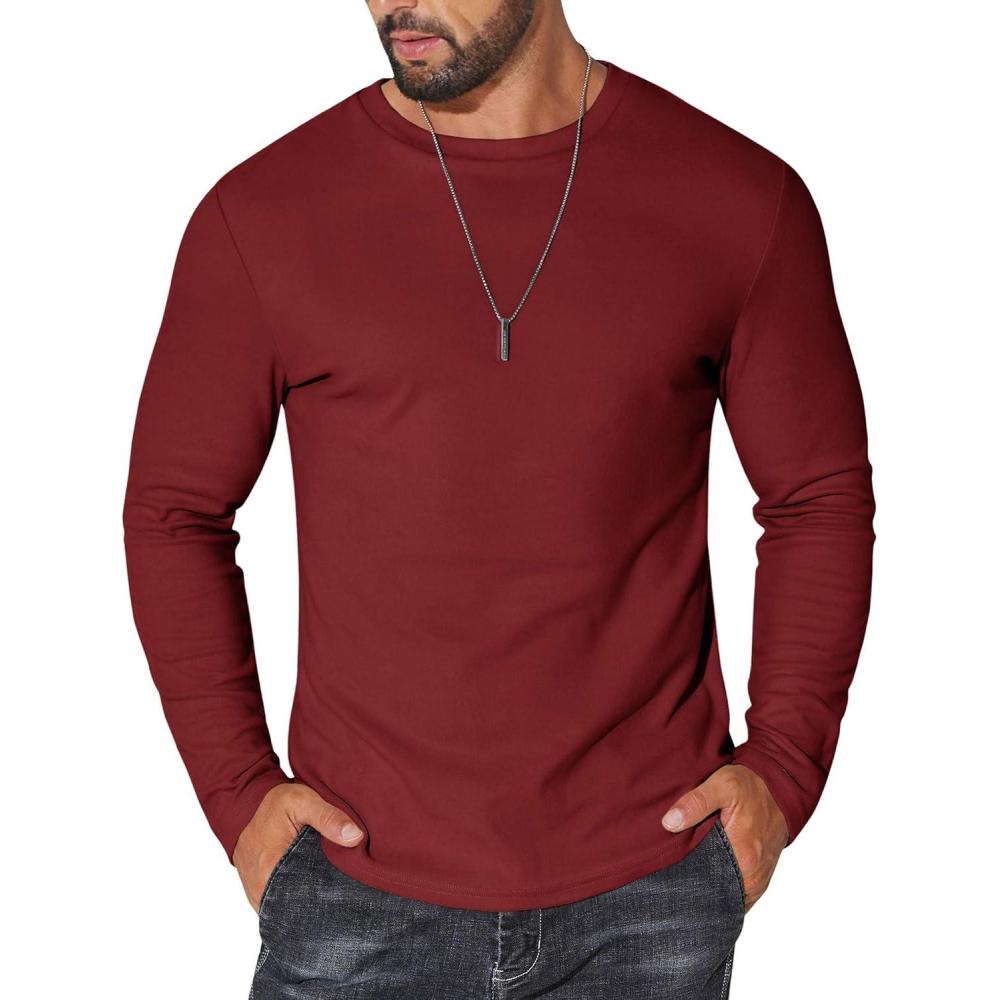 COOFANDY Thermal Shirts for Men Long Sleeve T Shirt Casual Basic Shirts Stretch Crew Neck Undershirts(Wine Red)