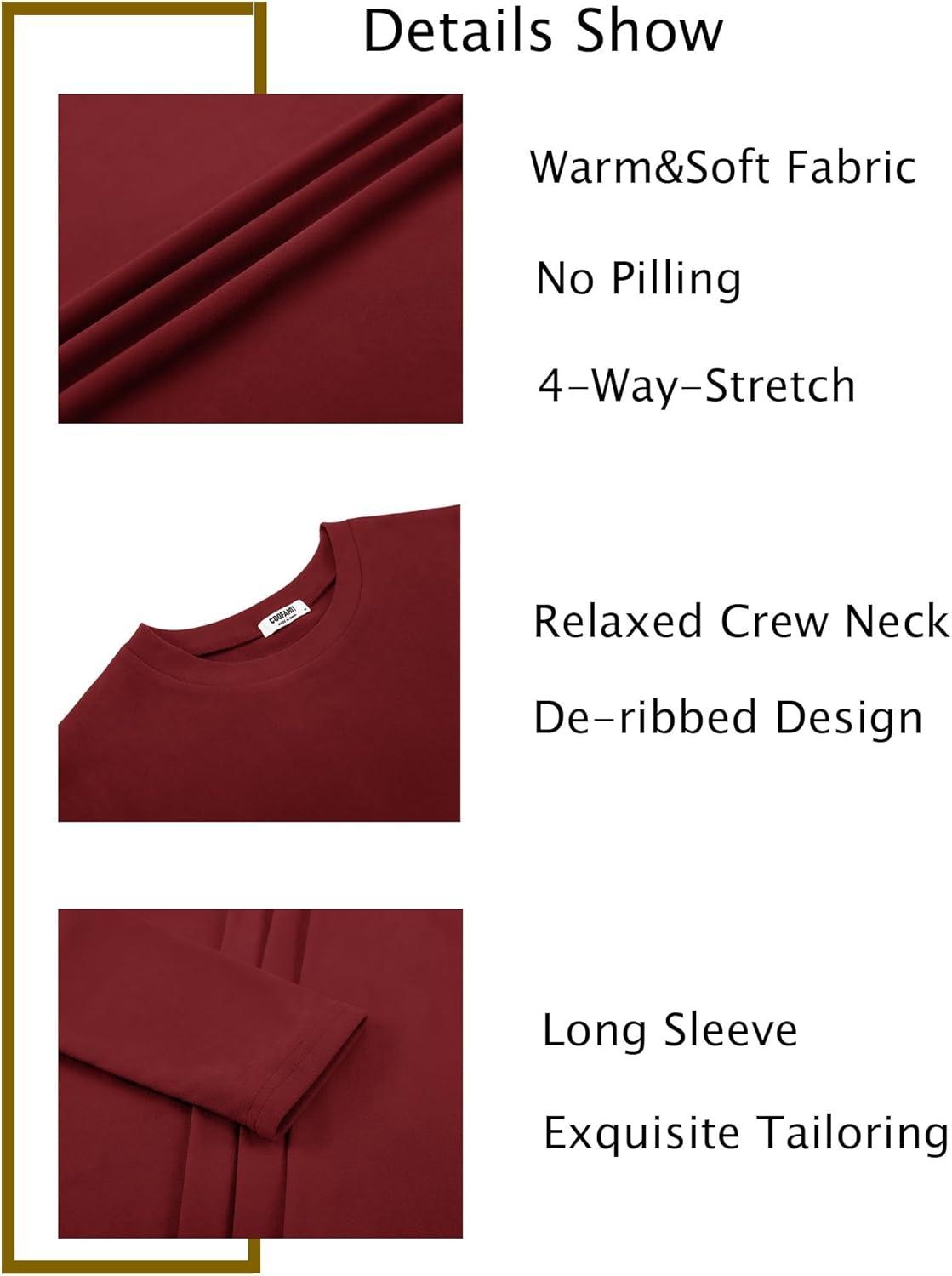 imageCOOFANDY Thermal Shirts for Men Long Sleeve T Shirt Casual Basic Shirts Stretch Crew Neck UndershirtsWine Red