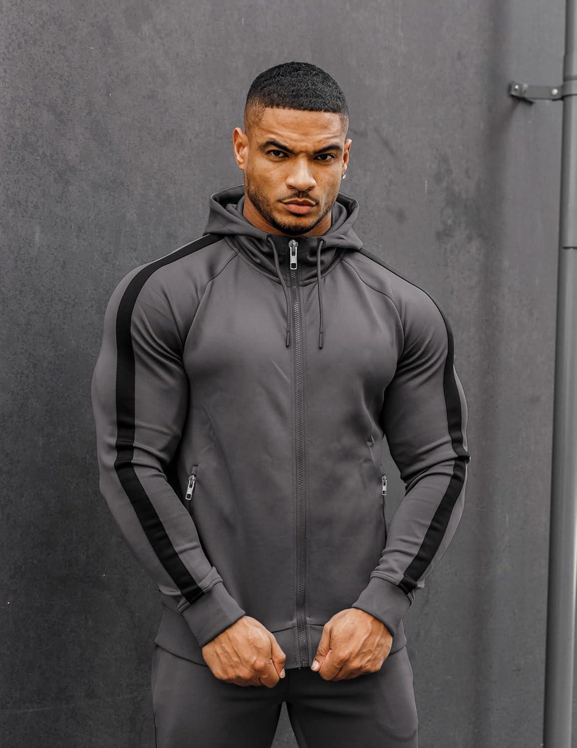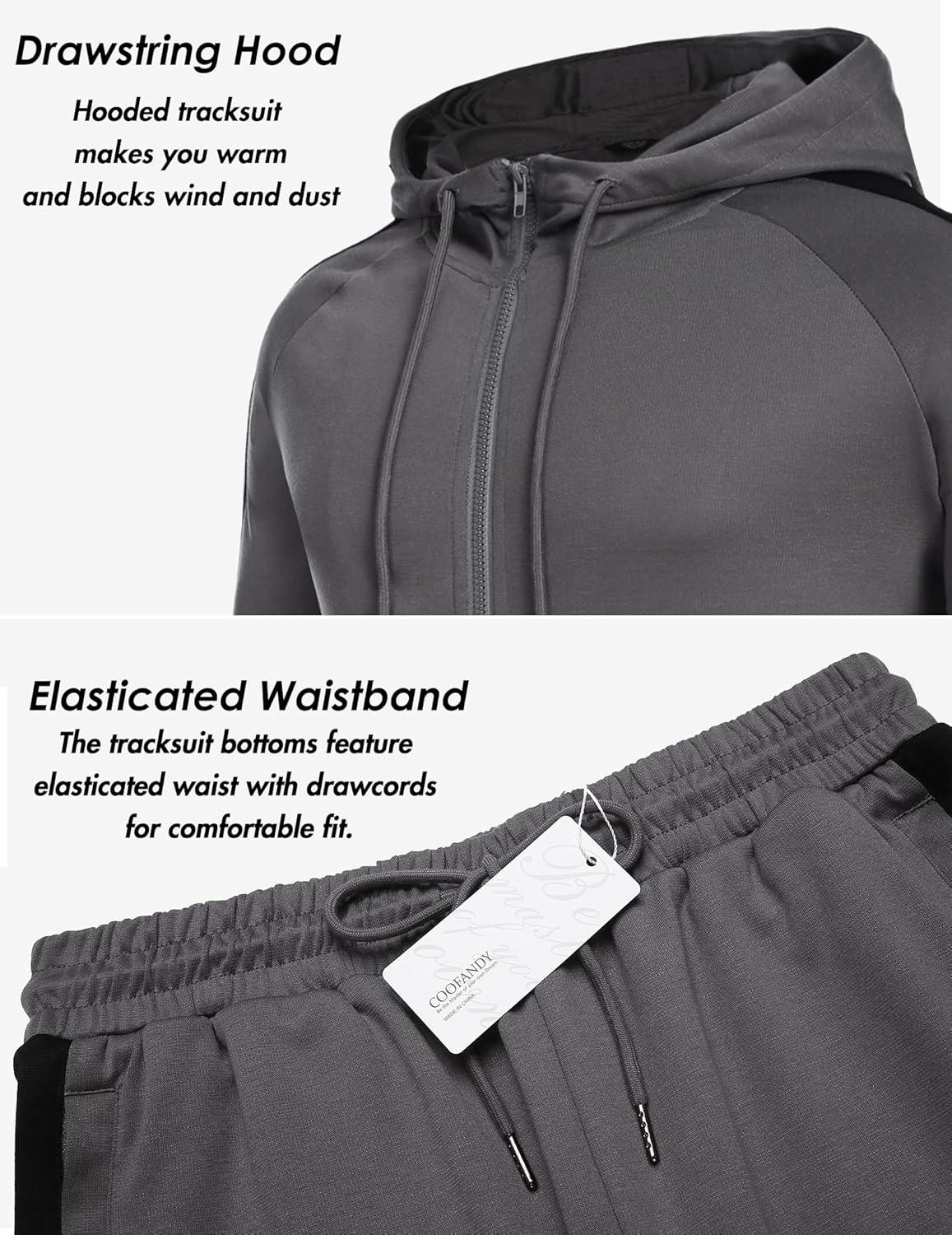COOFANDY Tracksuit Mens with Zipper Pockets Full Zip Hoodie Sweatsuit 2 Pieces Running Jogging Sports Casual Sweat Suits(Dark Grey Textile)