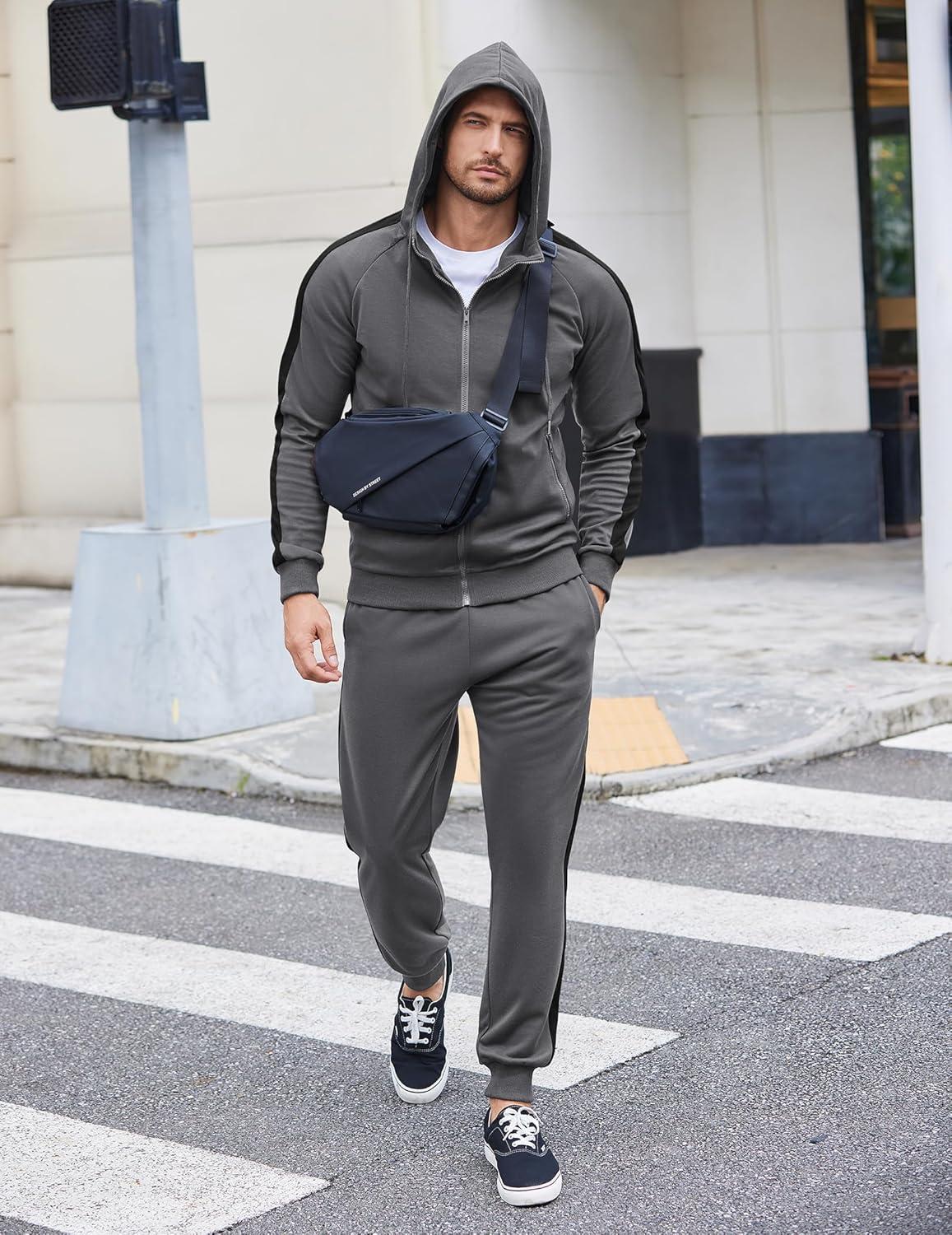 COOFANDY Tracksuit Mens with Zipper Pockets Full Zip Hoodie Sweatsuit 2 Pieces Running Jogging Sports Casual Sweat Suits(Grey)