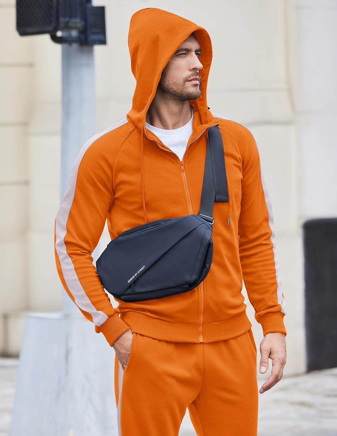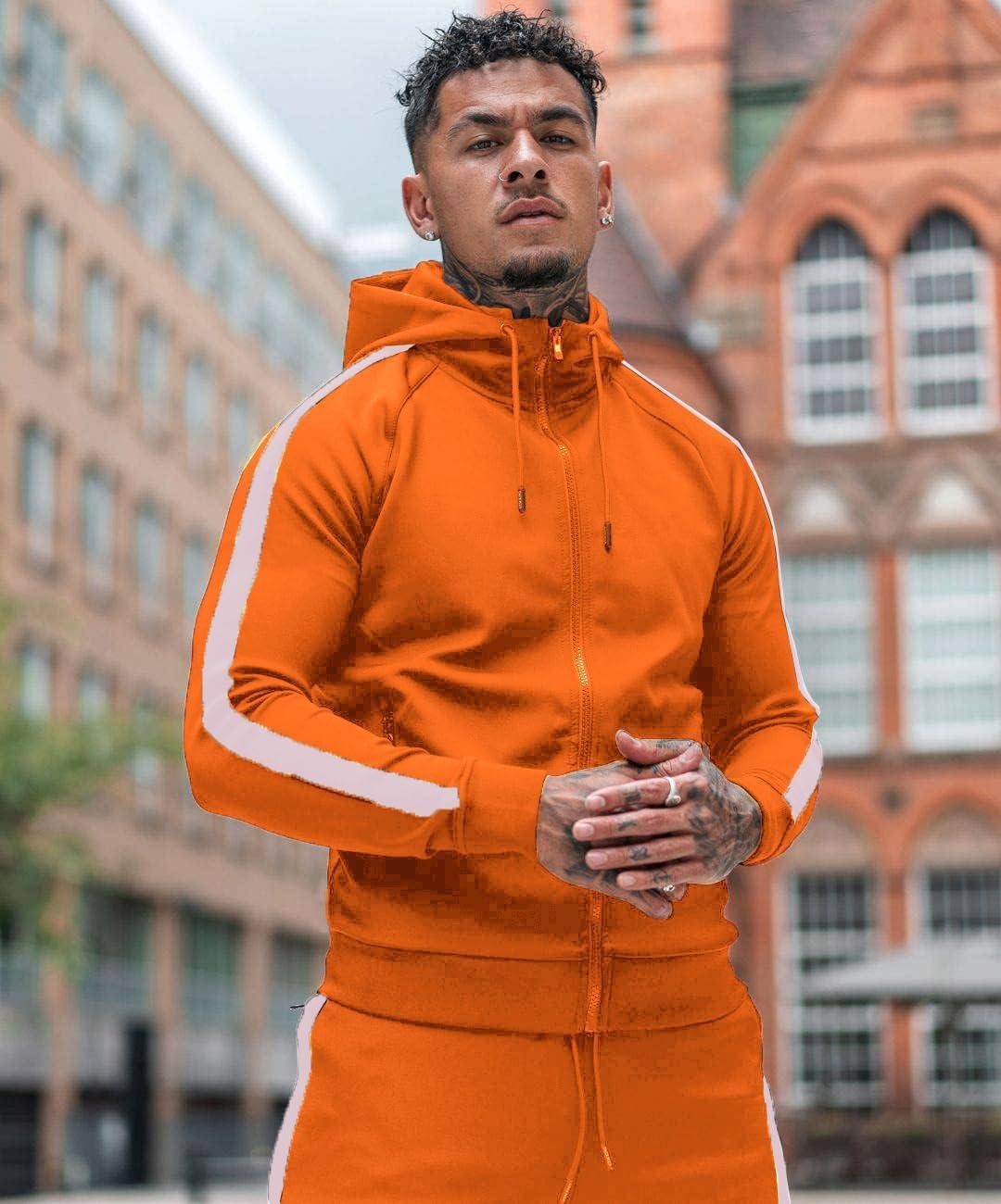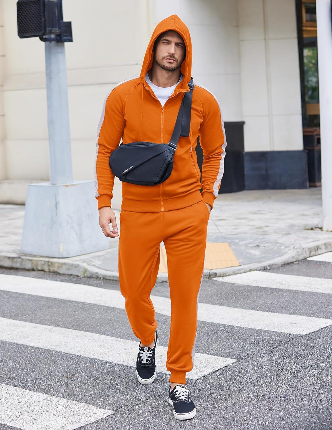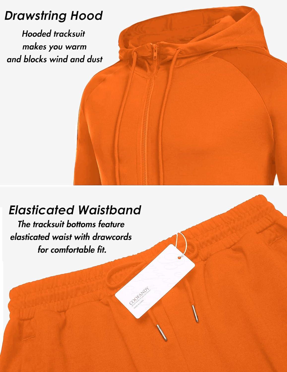 COOFANDY Tracksuit Mens with Zipper Pockets Full Zip Hoodie Sweatsuit 2 Pieces Running Jogging Sports Casual Sweat Suits(Orange)