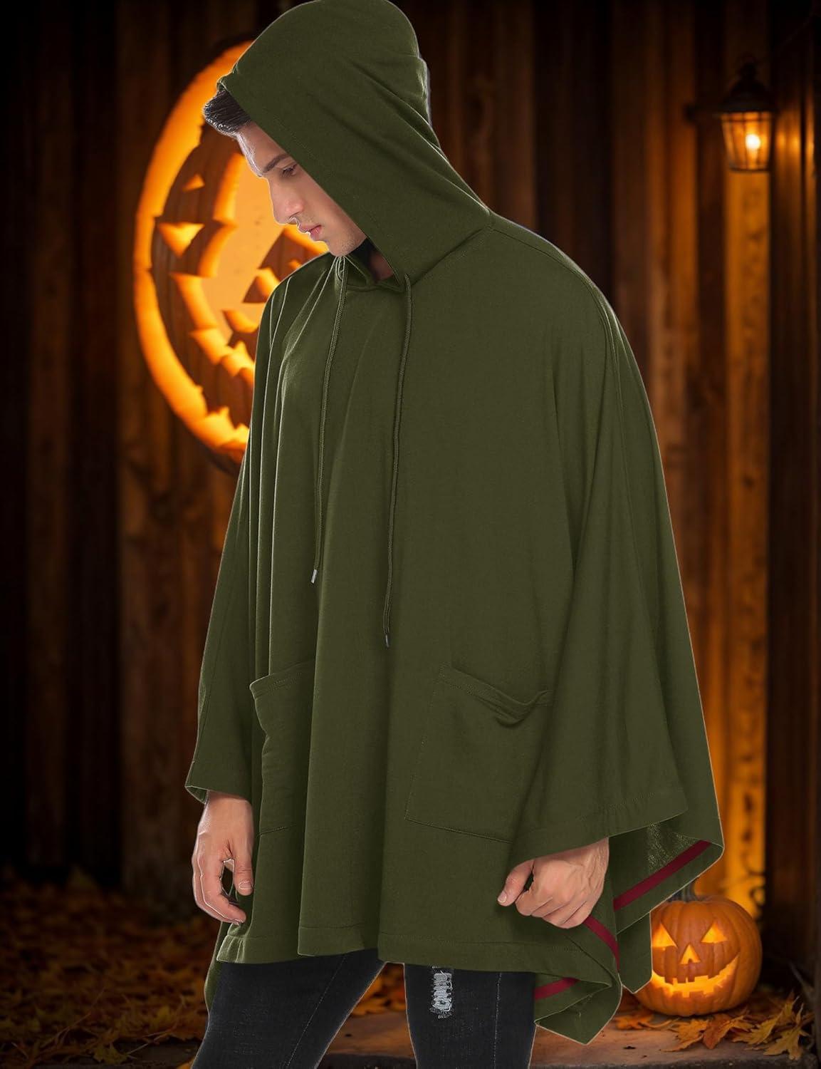 COOFANDY Unisex Casual Hooded Poncho Cape Cloak Fashion Coat Hoodie Pullover with Pocket(Army Green)