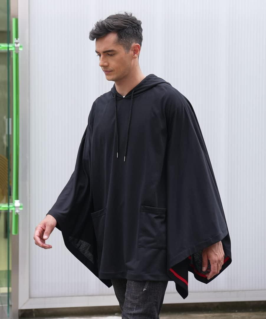imageCOOFANDY Unisex Casual Hooded Poncho Cape Cloak Fashion Coat Hoodie Pullover with PocketBlack
