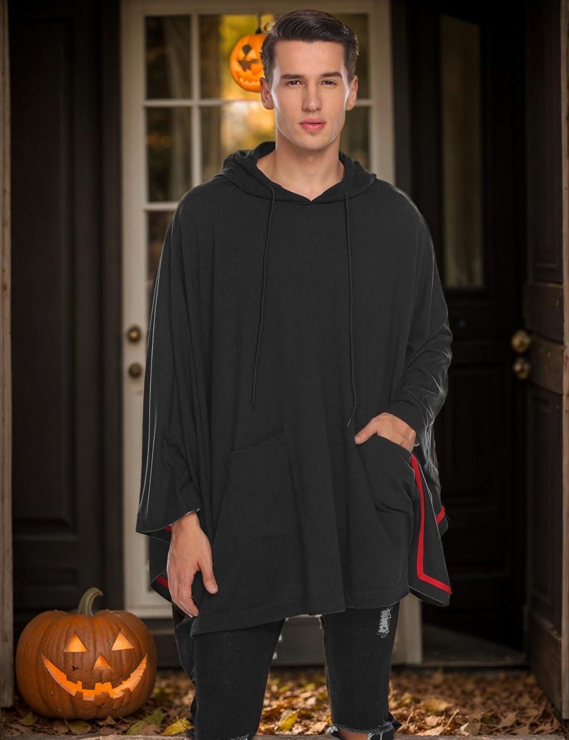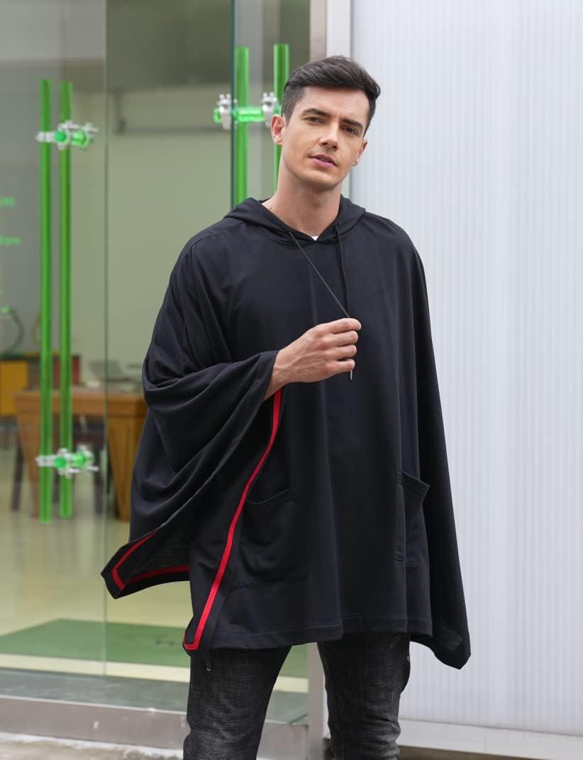 COOFANDY Unisex Casual Hooded Poncho Cape Cloak Fashion Coat Hoodie Pullover with Pocket(Black)