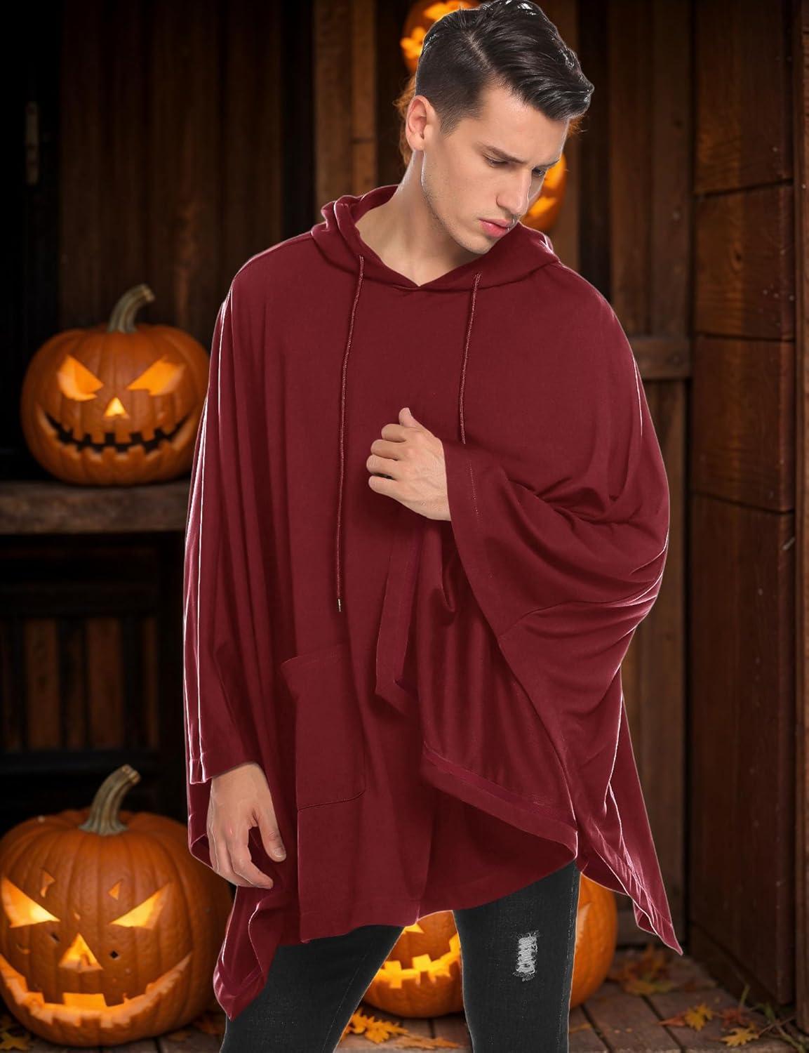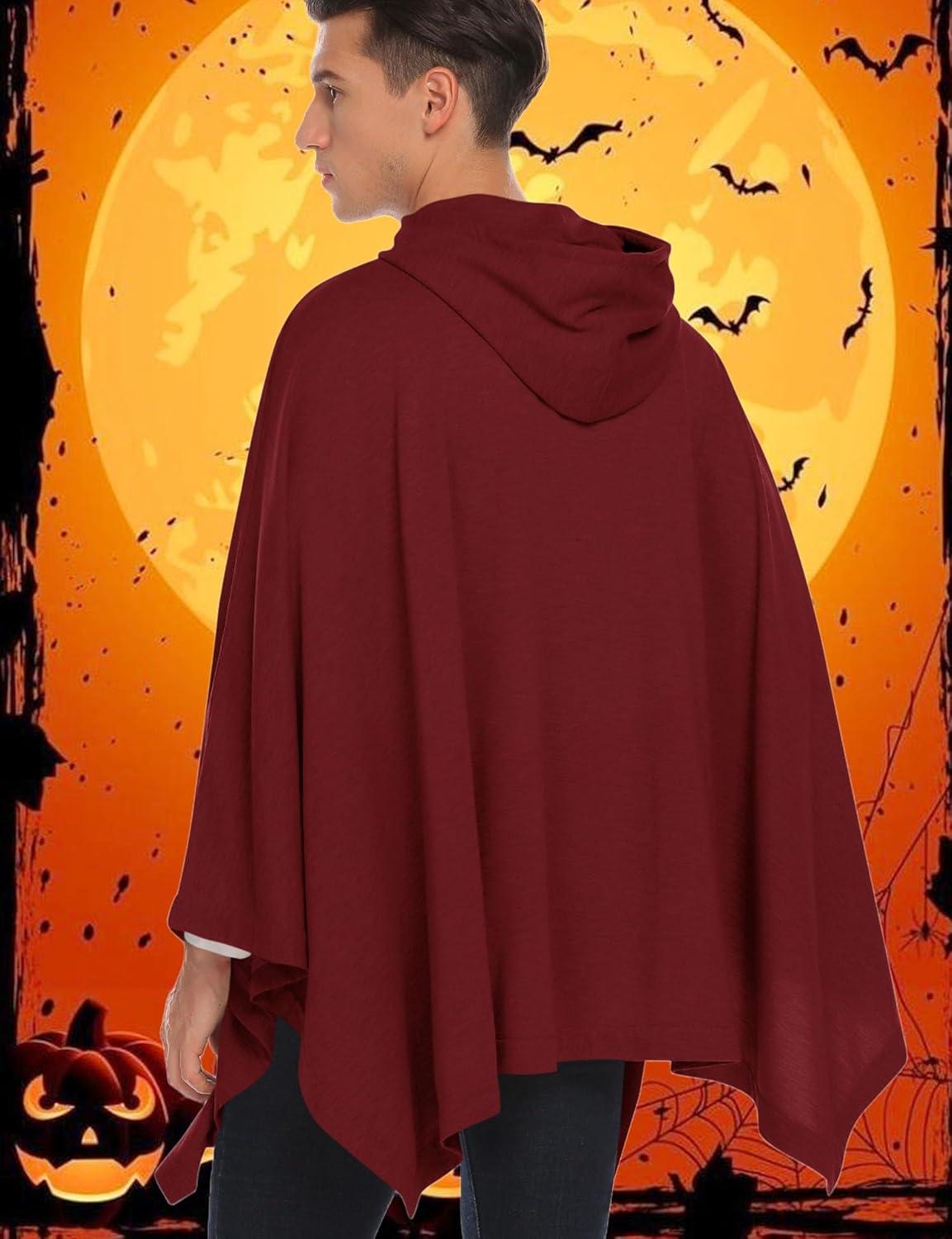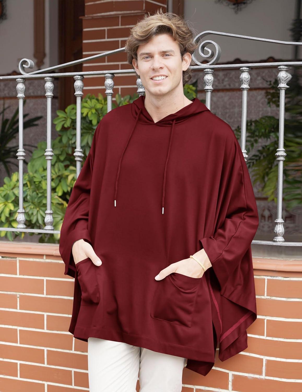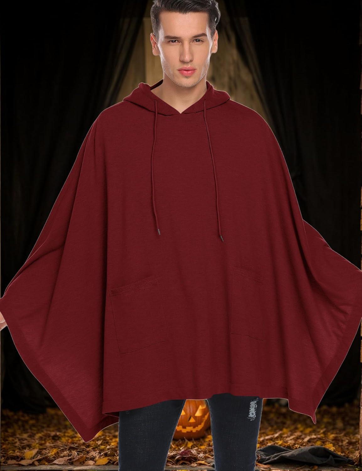 COOFANDY Unisex Casual Hooded Poncho Cape Cloak Fashion Coat Hoodie Pullover with Pocket(Wine Red)