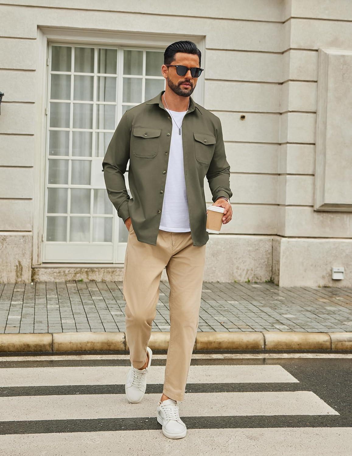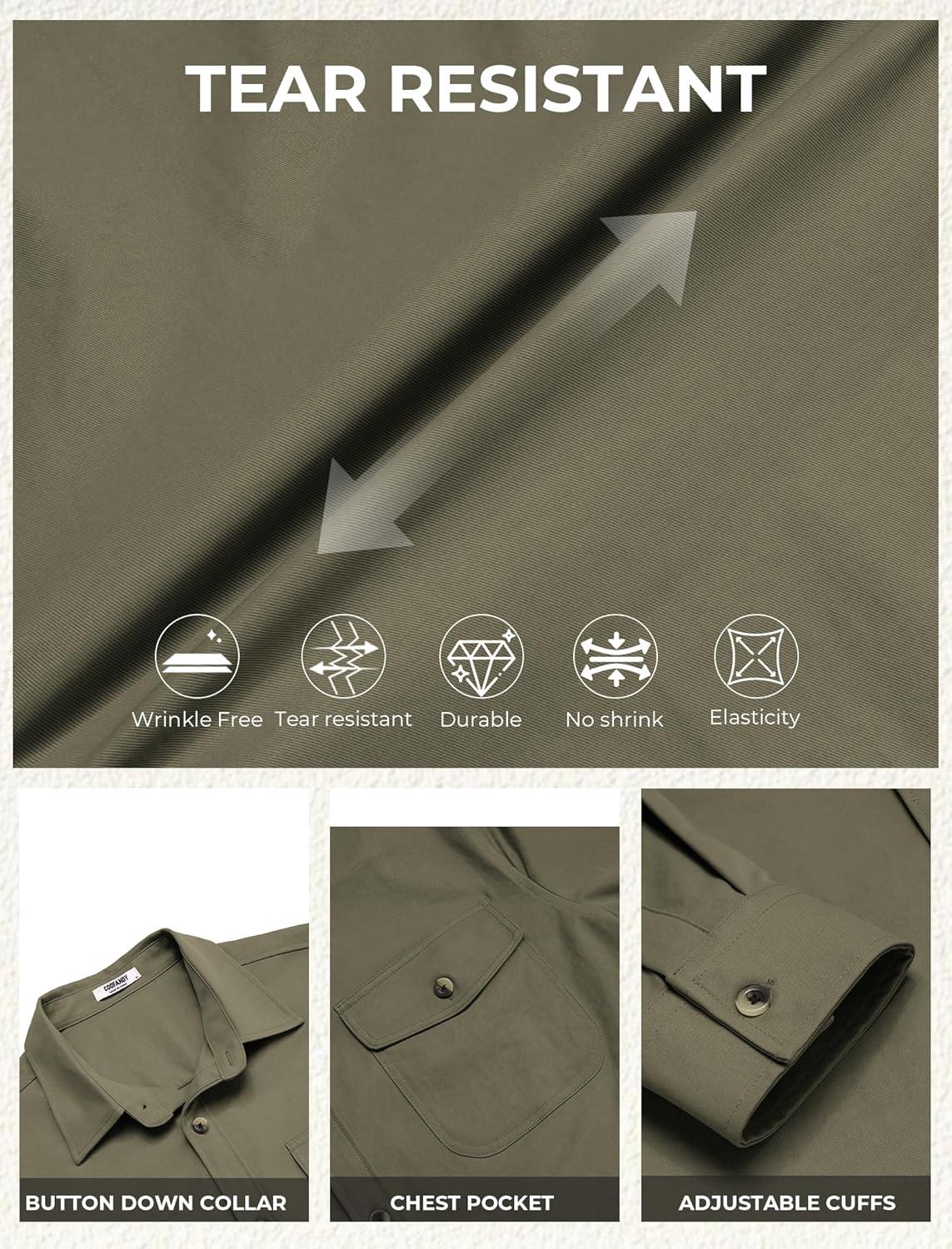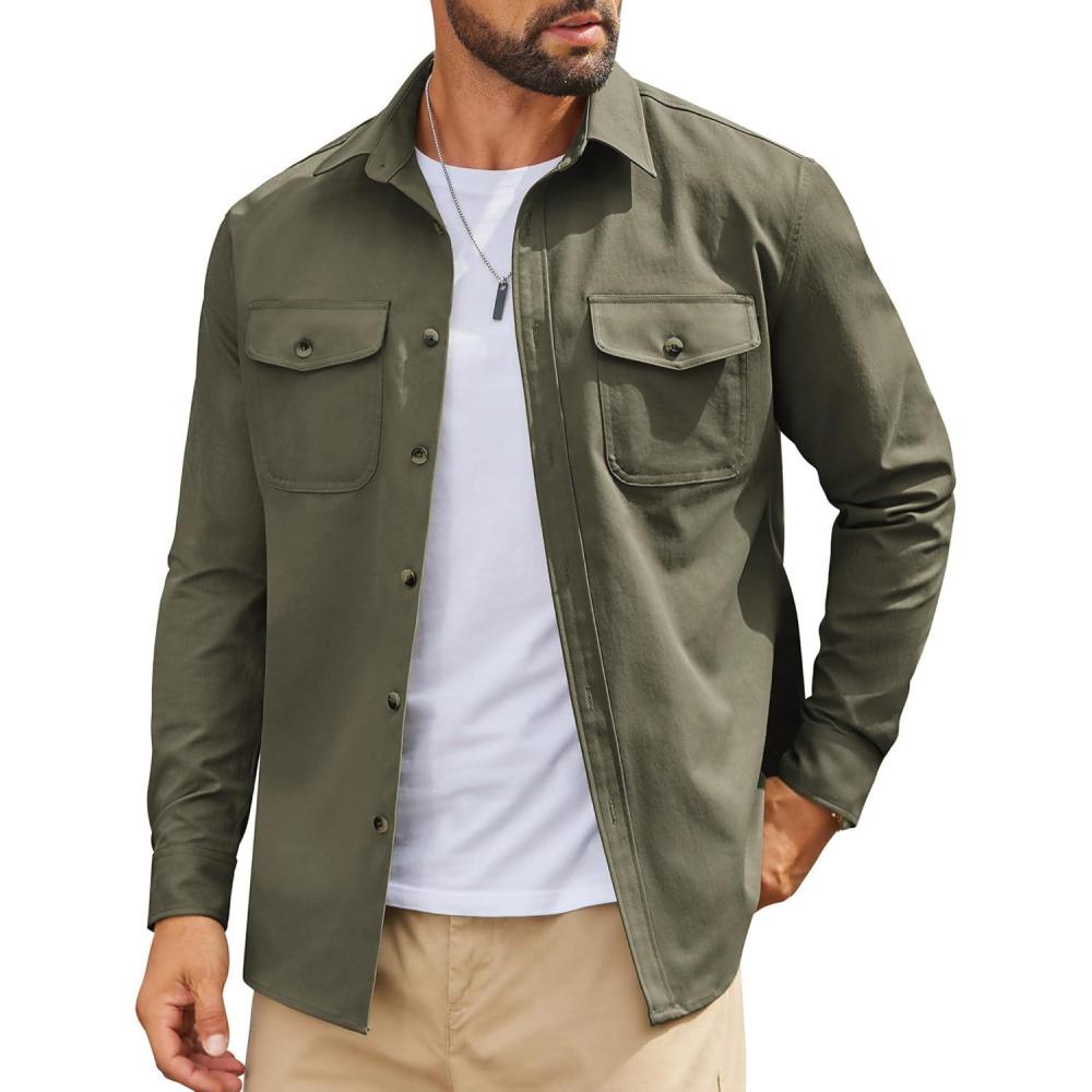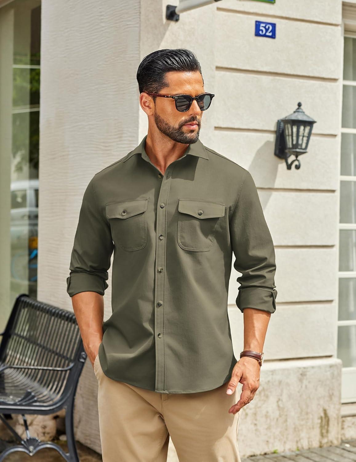COOFANDY Work Shirts for Mens Long Sleeve Casual Button Down Shirt Mens Shacket with Flap Pockets(Army Green)
