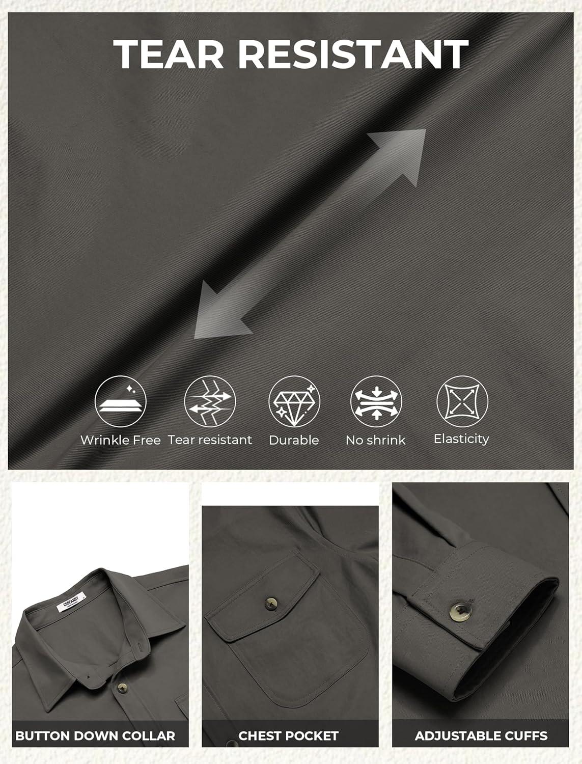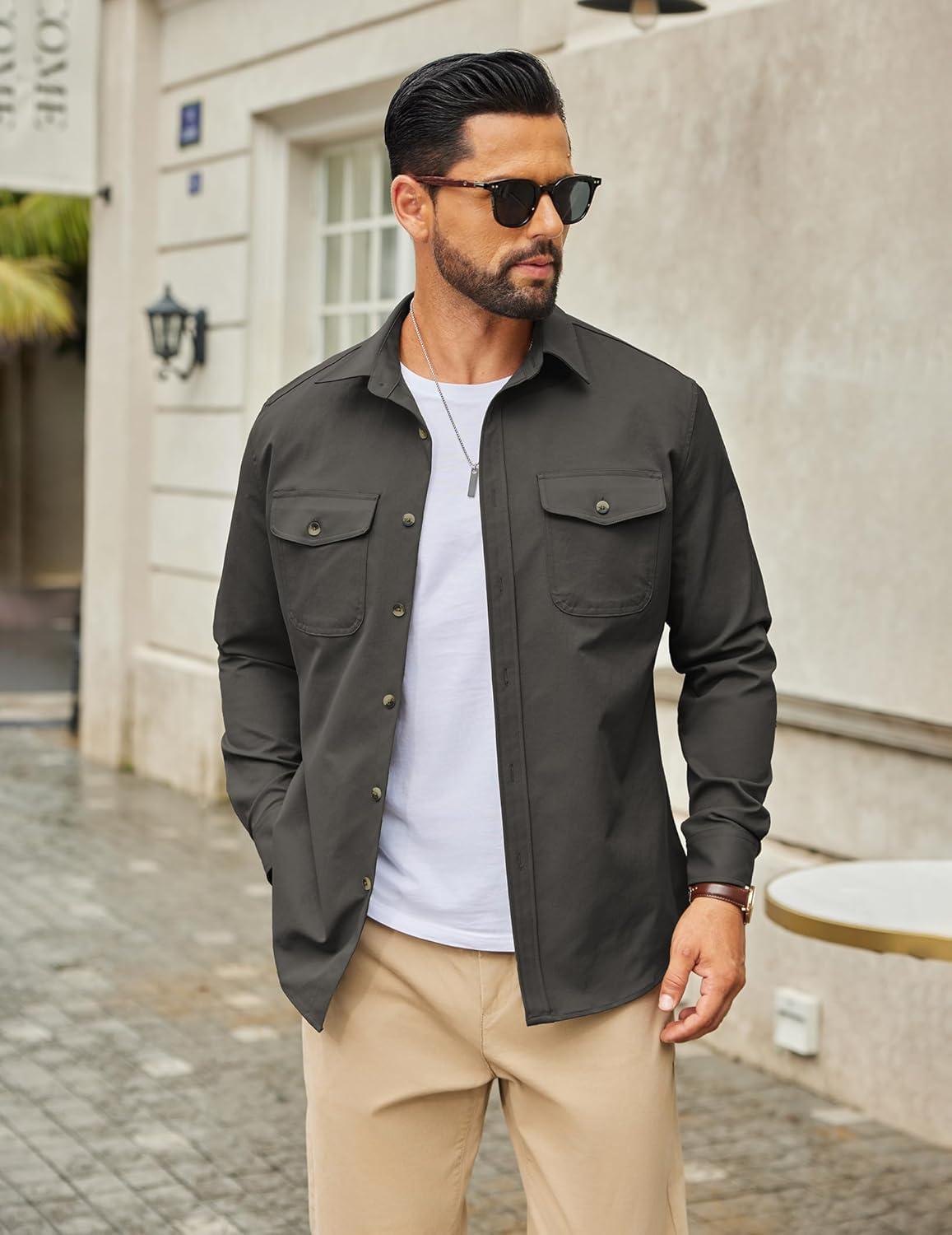 COOFANDY Work Shirts for Mens Long Sleeve Casual Button Down Shirt Mens Shacket with Flap Pockets(Dark Grey)