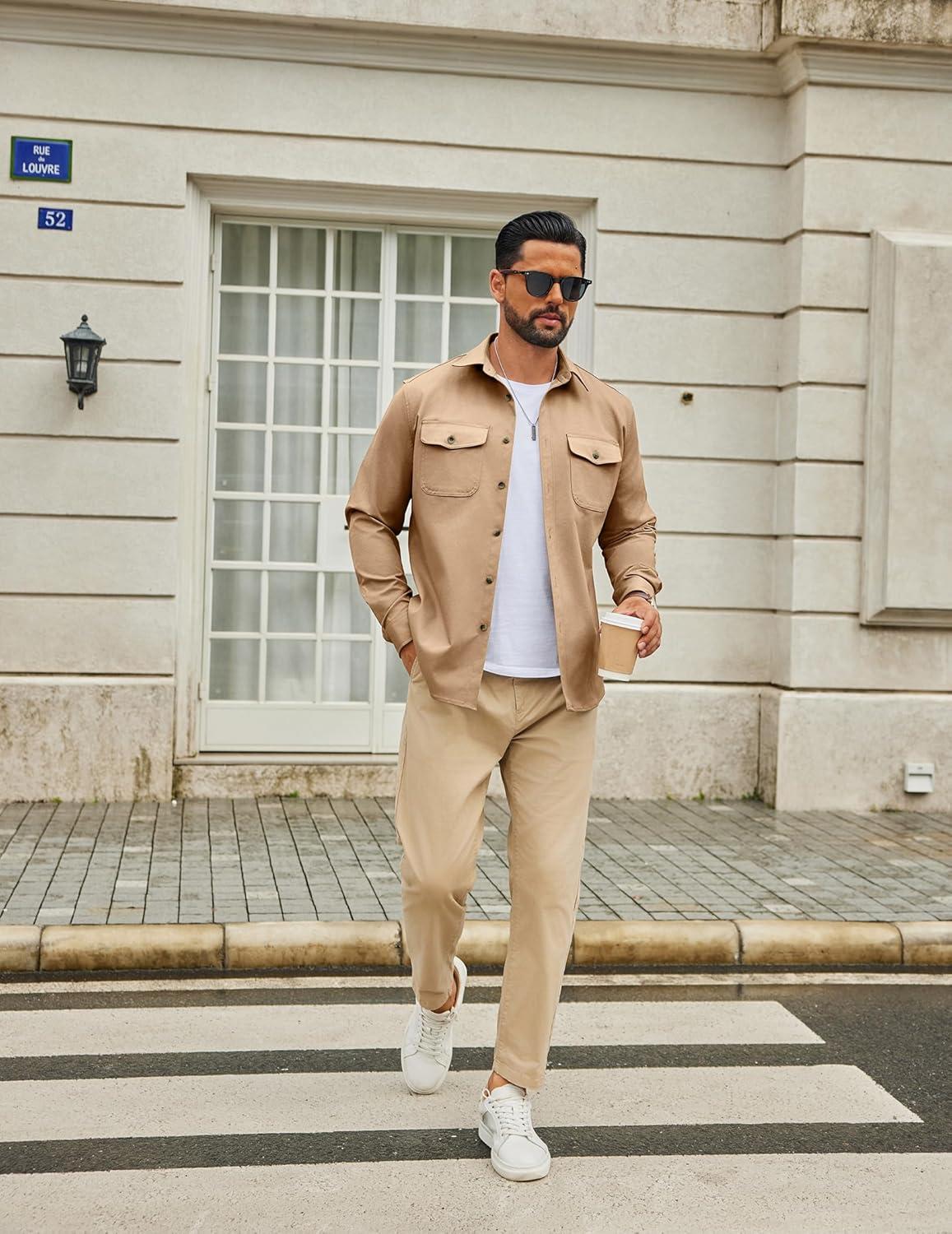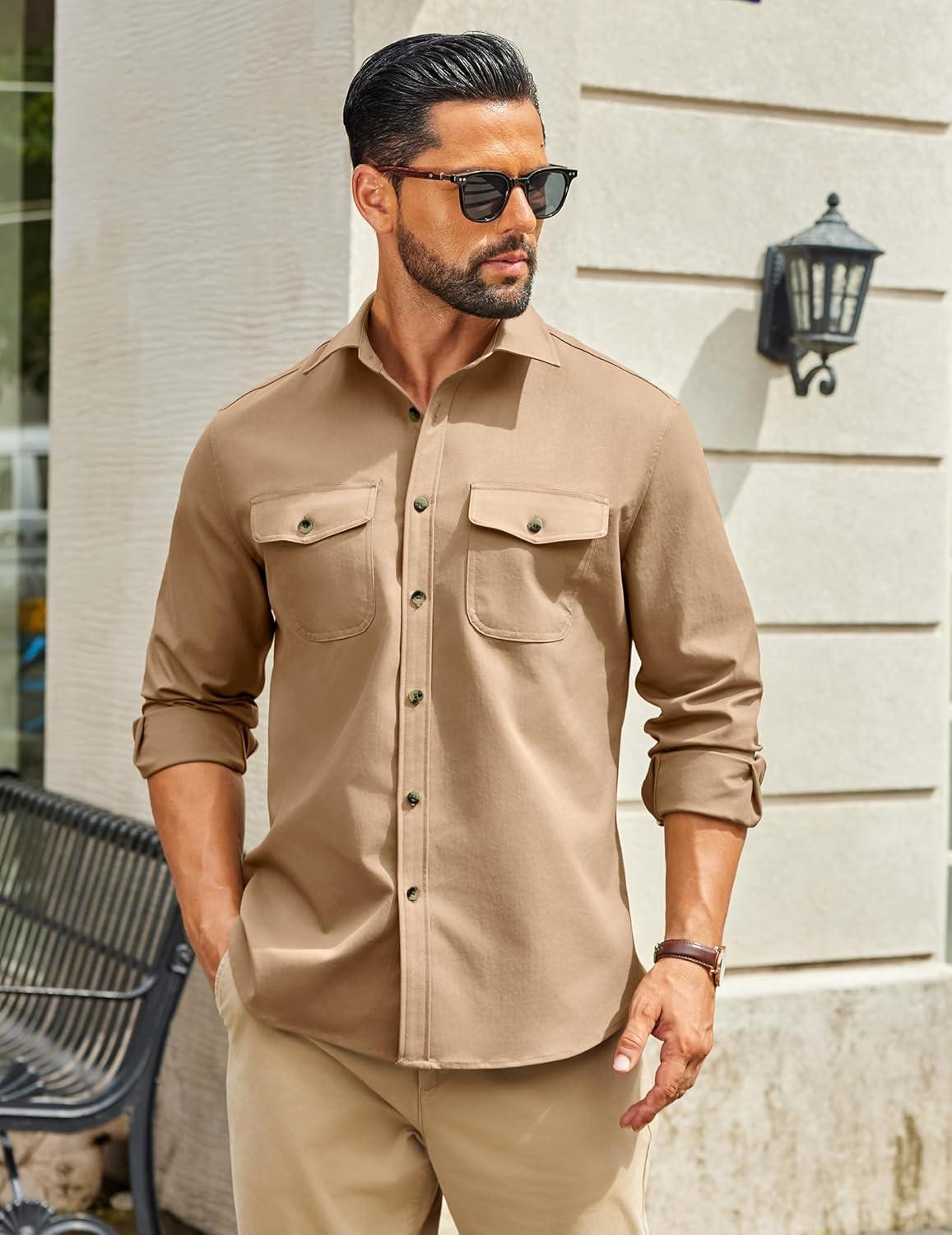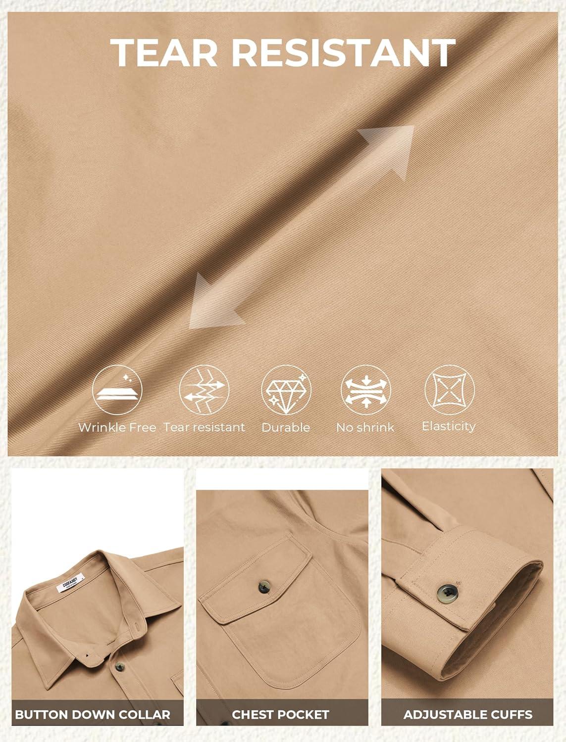 Get your hands on our exclusive COOFANDY Work Shirts for Mens Long Sleeve Casual Button Down Shirt Mens Shacket with Flap Pockets(Kakhi) collection, now at a discounted price.