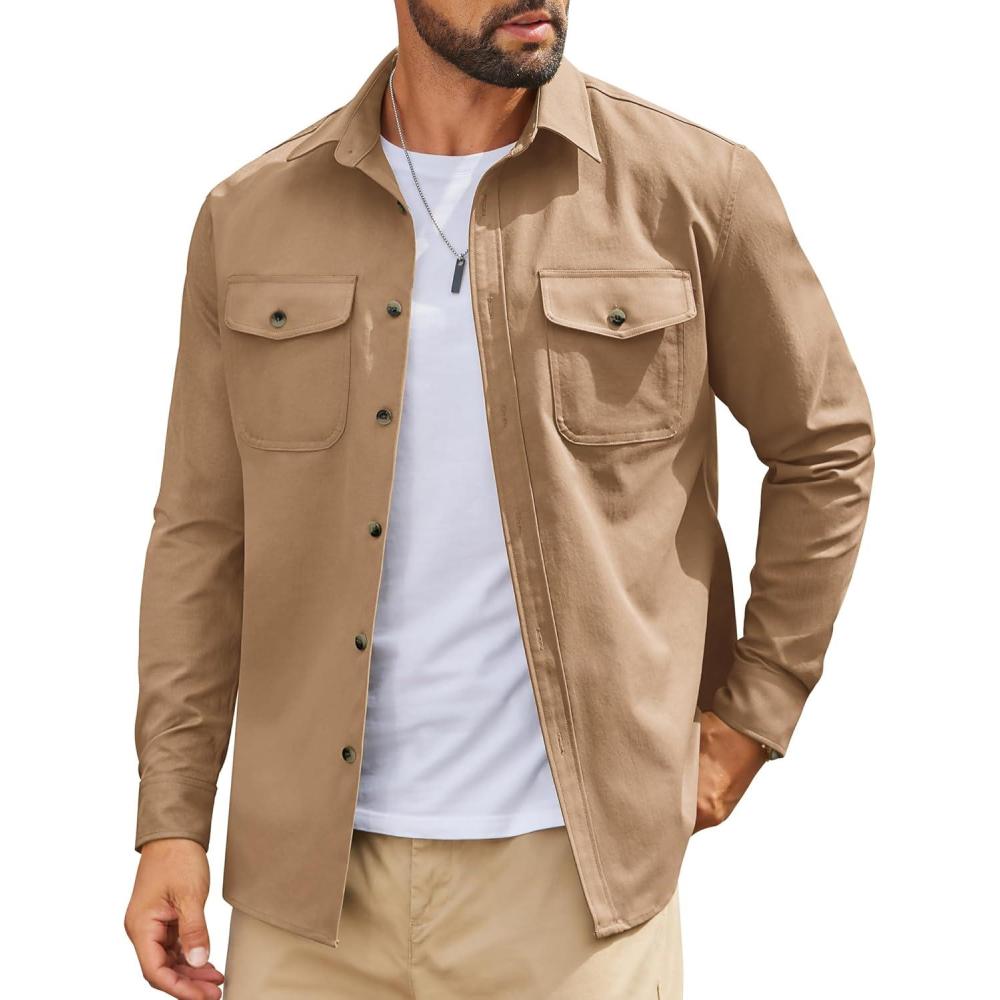 COOFANDY Work Shirts for Mens Long Sleeve Casual Button Down Shirt Mens Shacket with Flap Pockets(Kakhi)