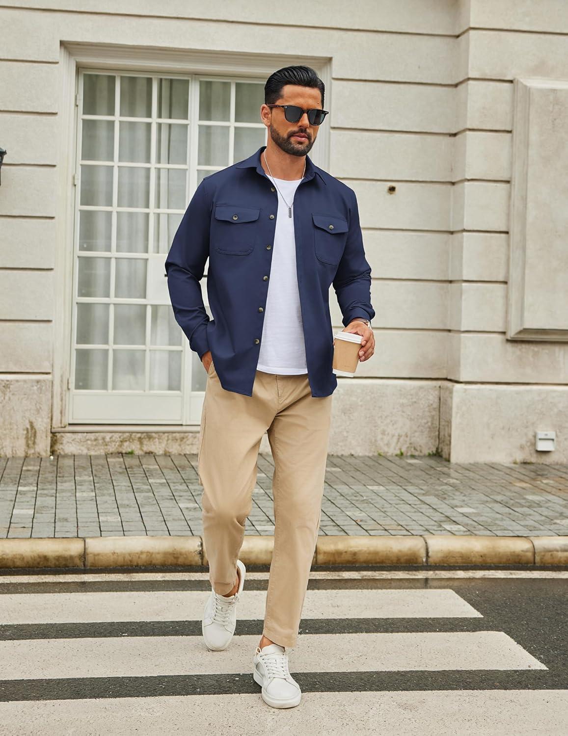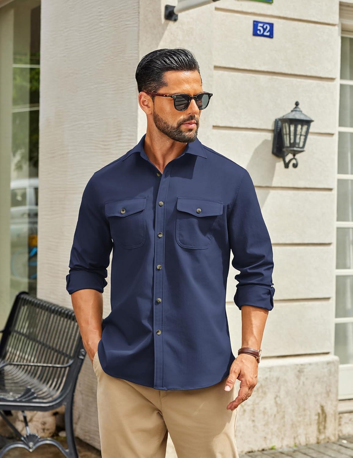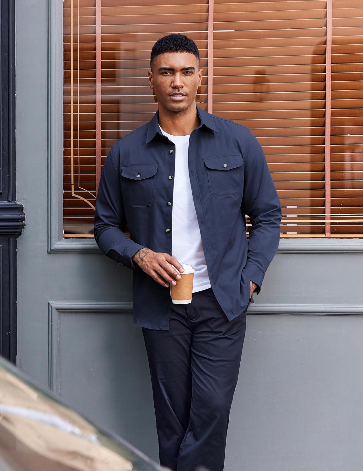 Our clearance section features the best deals on COOFANDY Work Shirts for Mens Long Sleeve Casual Button Down Shirt Mens Shacket with Flap Pockets(Navy Blue) and accessories. Check it out now!